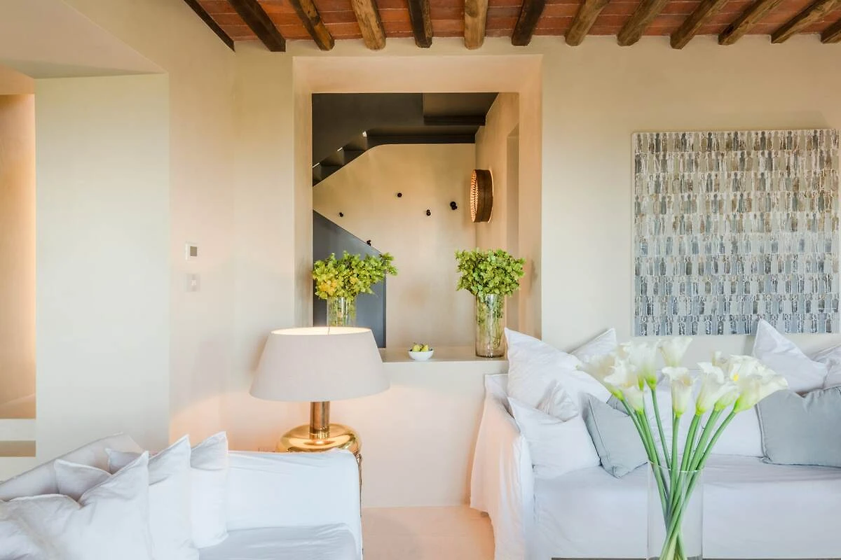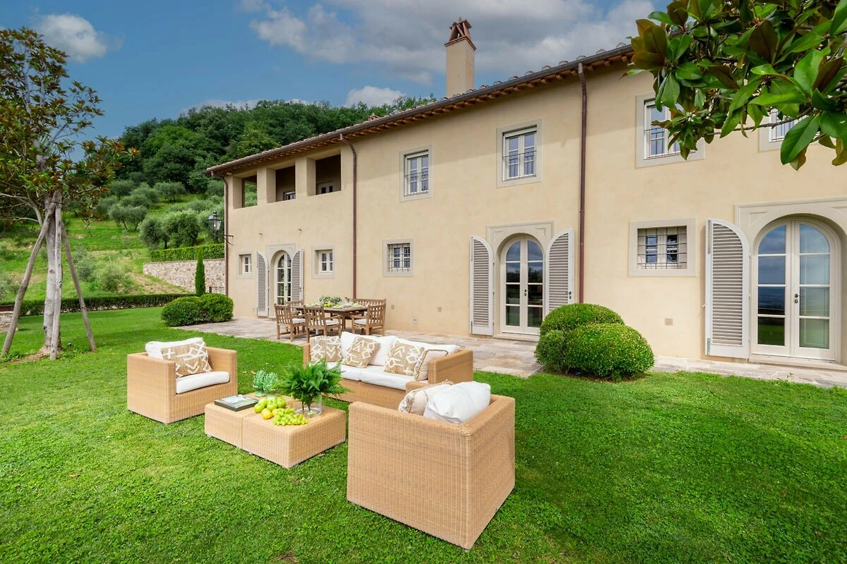 Nestled amidst the gentle rolling hills of Tuscany, where the whispers of history mingle with the scent of olive groves, stands a beacon of luxury and tranquillity: a timeless farmhouse retreat, just a stone's throw away from the enchanting town of Lucca. Perched majestically atop a verdant hilltop, this antique farmhouse exudes an aura of elegance and sophistication, offering guests an unparalleled vantage point to behold the breath-taking panoramic views that stretch out before them. With each dawn, the golden rays of the Tuscan sun paint the landscape in hues of amber and ochre, while at dusk, the sky transforms into a canvas of fiery oranges and purples, casting a spellbinding glow over the ancient city of Lucca below. Stepping through the threshold of this exquisite sanctuary, guests are greeted by a seamless blend of rustic charm and modern luxury. The interiors, adorned in crisp white hues and bathed in natural light, exude an air of serenity and refinement. Every corner of this haven has been meticulously curated to evoke a sense of tranquillity, from the plush furnishings to the understated elegance of the décor. Venture outside, and discover a private oasis that promises to delight the senses. The infinity salted pool, with its glistening waters that seem to merge effortlessly with the horizon, offers a refreshing respite from the Mediterranean sun. Here, amidst the lush surroundings, guests can unwind and indulge in moments of pure bliss, while drinking in the awe-inspiring vistas that stretch out before them. But the allure of this haven extends far beyond its secluded confines. With its prime location, just a short distance from the heart of Lucca, guests are afforded the opportunity to immerse themselves in the rich tapestry of culture and history that defines this ancient city. From wandering along the cobblestone streets of the historic centre to indulging in the culinary delights of the local trattorias, each moment promises to be a cherished memory in the making. And for those seeking to explore further afield, the wonders of the Tuscan coast beckon. With easy access to the sun-kissed beaches of Versilia and the picturesque villages of the Cinque Terre, guests are spoiled for choice when it comes to indulging in seaside adventures and coastal charm. Moreover, this luxury farmhouse serves as a gateway to a plethora of iconic destinations. With its strategic location, daily excursions to enchanting locales like San Gimignano, Volterra, Pisa, and Florence are effortlessly within reach. Whether immersing oneself in Renaissance splendour or marvelling at ancient architecture, the possibilities for unforgettable adventures are endless. Seize the opportunity to embark on a journey through time and culture, all from the comfort of your exclusive Tuscan retreat. In this idyllic retreat, where luxury meets tradition, guests are invited to savour the simple pleasures of life amidst the timeless beauty of Tuscany. Whether lounging by the poolside, sipping wine as the sun sets over the horizon, or exploring the storied streets of Lucca, each moment spent in this enchanting farmhouse is sure to be imbued with magic and wonder. Lay out: On the ground floor: Twin bedroom, Bathroom Open space comprising: Kitchen, Dining area, Living room Three steps and a bathroom, stairs leading to the first floor First floor: Small room with sofa and TV 4 Double bedrooms each one with en-suite bathroom Included in the rental price: Final Cleaning Towels and linens Electricity Gas Water Internet Wifi High chair (upon request at booking) Babycot (upon request at booking) Not included in the rental price: Tourist tax: mandatory and required by the local municipality, where applicable. Midstay and/or weekly cleaning and change of towels and linens Baby cot's linens