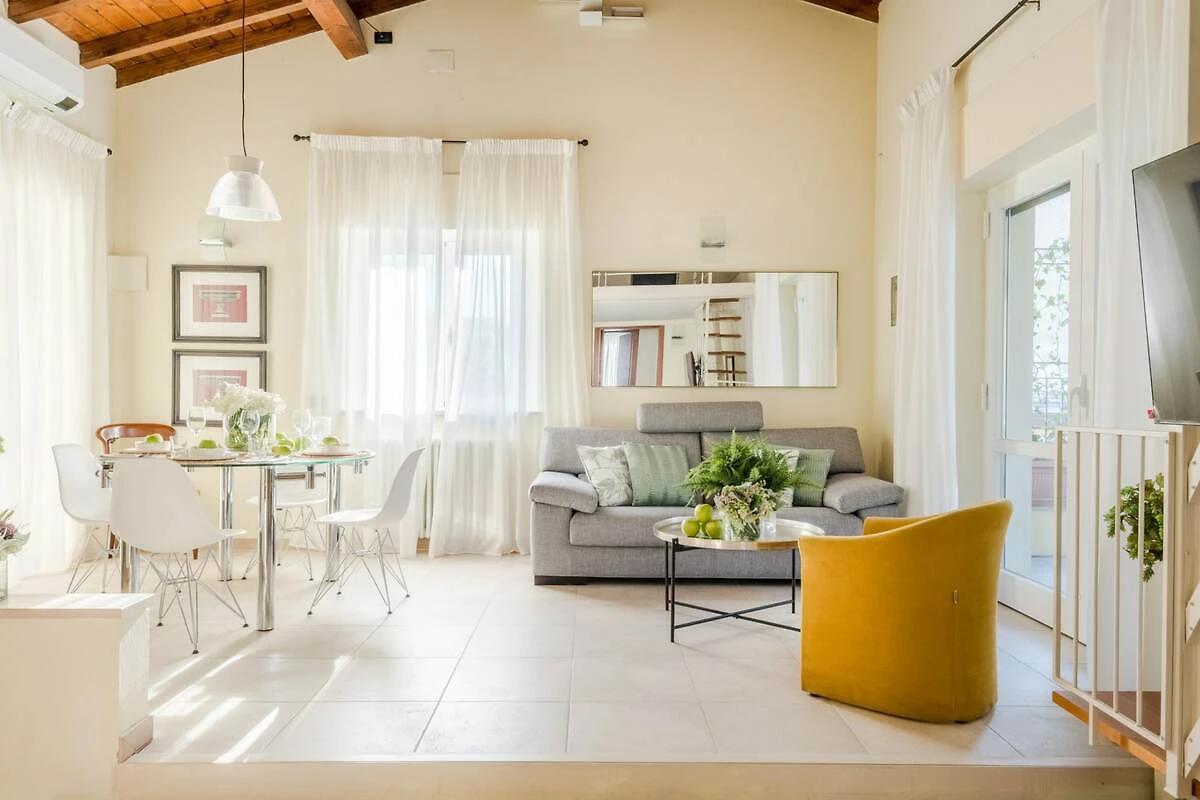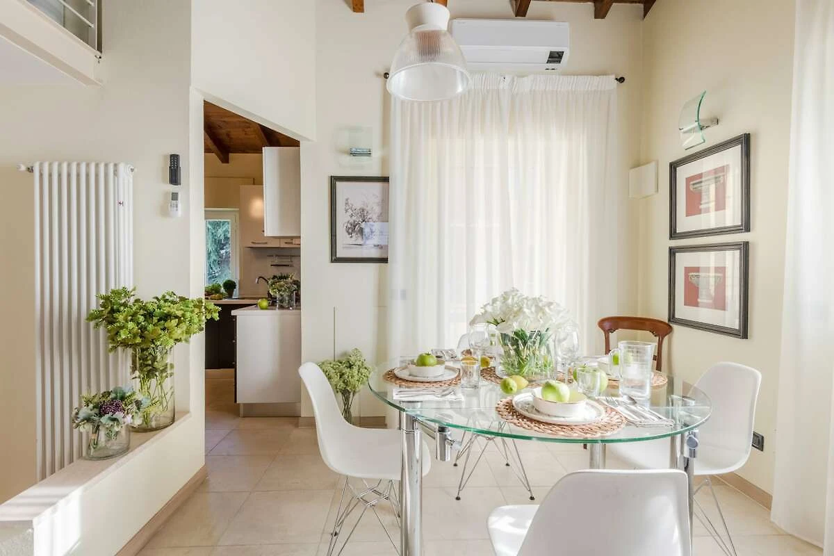 Gehen Sie hinaus, genießen Sie die Terrasse und tauchen Sie ein in die lebendige Atmosphäre des Viertels. Cafés, Supermärkte, Restaurants und Geschäfte sind nur einen kurzen Spaziergang entfernt – alles, was Sie brauchen, ist bequem zu erreichen. Die Wohnung liegt zudem günstig in der Nähe des Bahnhofs und des Autobahnanschlusses und bietet so einfachen Zugang zu nahegelegenen Sehenswürdigkeiten. Perfekt für Reisende, die einen zentralen und dennoch entspannten Ausgangspunkt in Lucca suchen, verbindet diese Wohnung modernen Komfort mit einer erstklassigen Lage für ein unvergessliches Stadterlebnis.