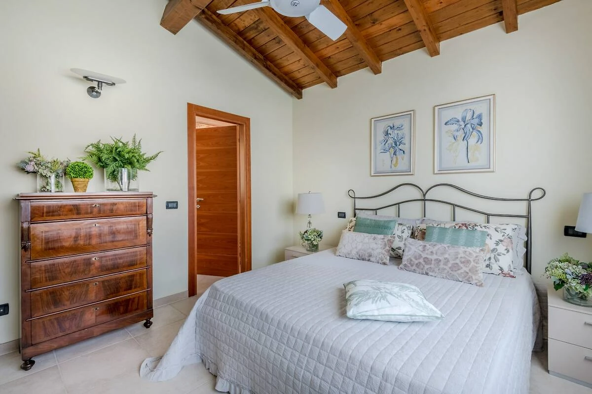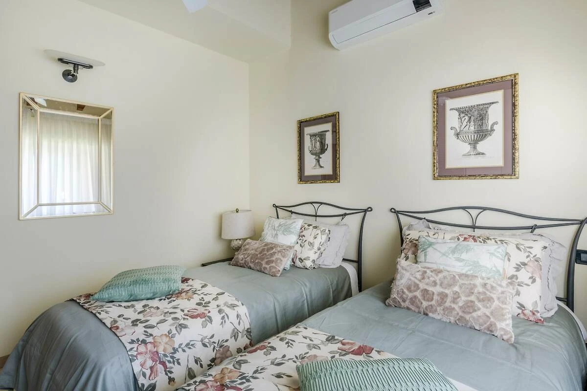Die 135 m² große Wohnung bietet einen geräumigen Wohnbereich, eine voll ausgestattete Küche, zwei Schlafzimmer und zwei moderne Badezimmer mit Duschen. Das Hauptschlafzimmer verfügt über ein Doppelbett, das zweite über zwei Einzelbetten – ideal für Familien oder Freundesgruppen. Zur Ausstattung gehören Klimaanlage, Fernseher, Waschmaschine, Bügeleisen, Haartrockner und alle wichtigen Küchengeräte für einen komfortablen und unabhängigen Aufenthalt.