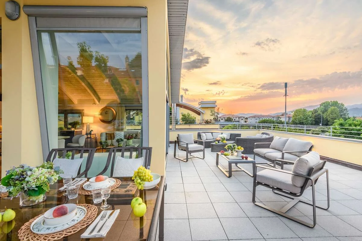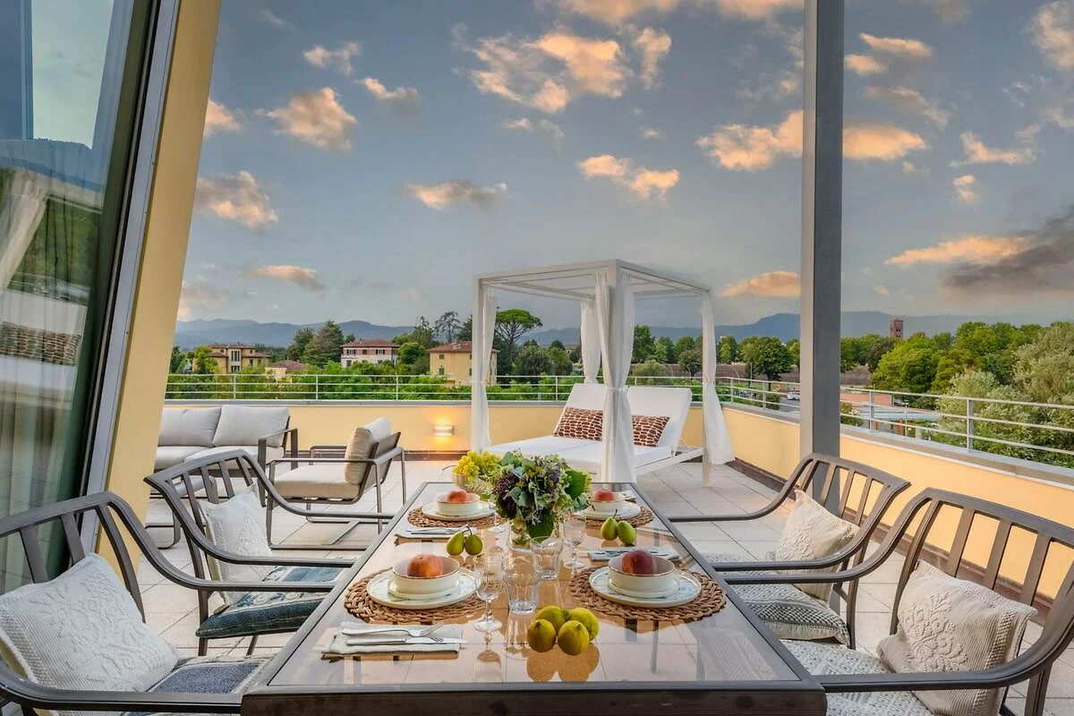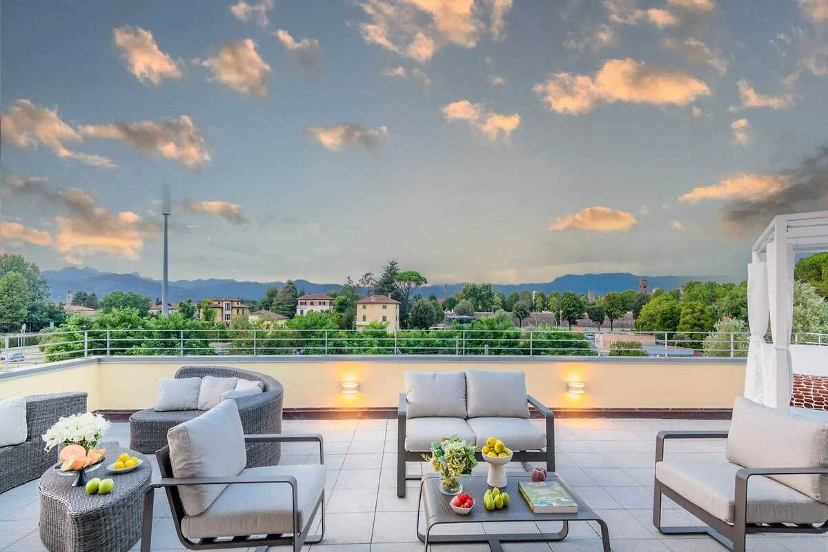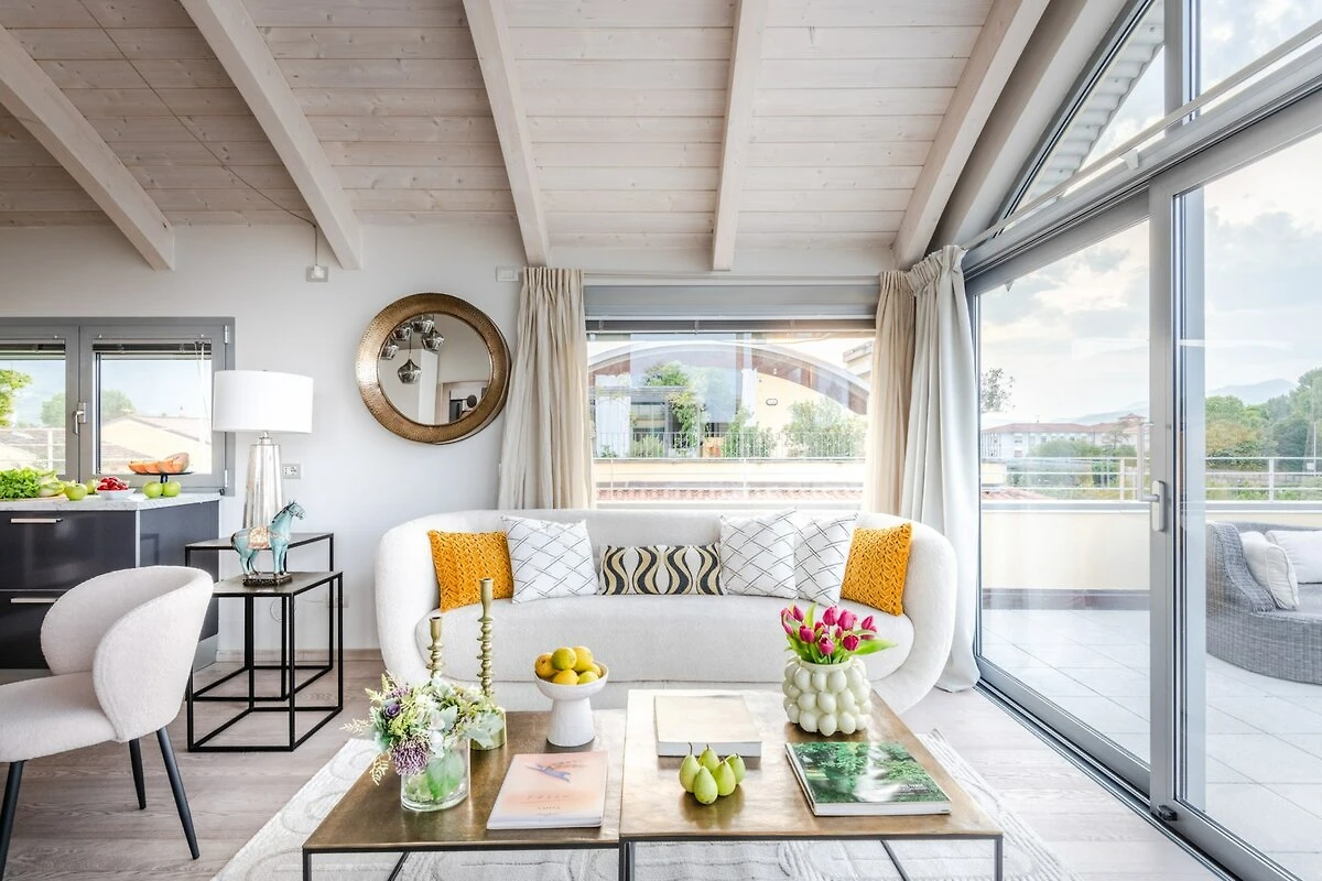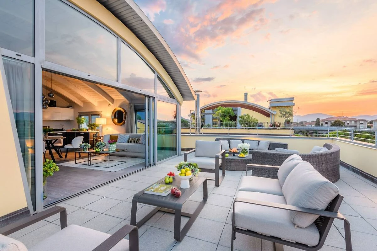 Stellen Sie sich vor, Sie wachen in einem sonnendurchfluteten Refugium über Luccas historischen Mauern auf, getaucht in goldenes Licht durch raumhohe Glasfenster. Dieses moderne Penthouse im ruhigen San Concordio bietet unvergleichlichen Luxus und verbindet zeitgenössisches Design mit der zeitlosen Schönheit der Toskana. Betreten Sie einen großzügigen, offenen Wohnraum, in dem elegante Möbel auf natürliches Licht treffen. Glaswände rahmen einen atemberaubenden Panoramablick auf Luccas alte Befestigungsanlagen ein und verbinden so harmonisch die Eleganz des Innenbereichs mit der Pracht des Außenbereichs.