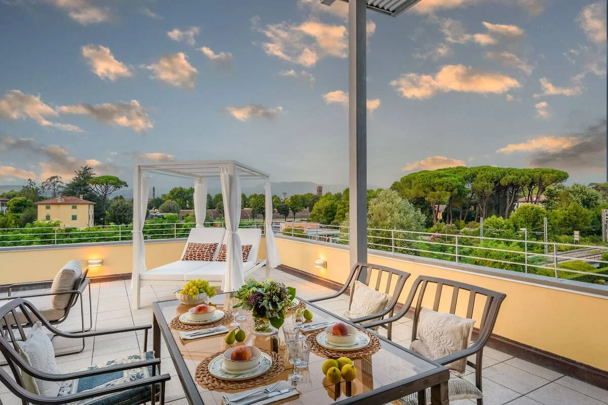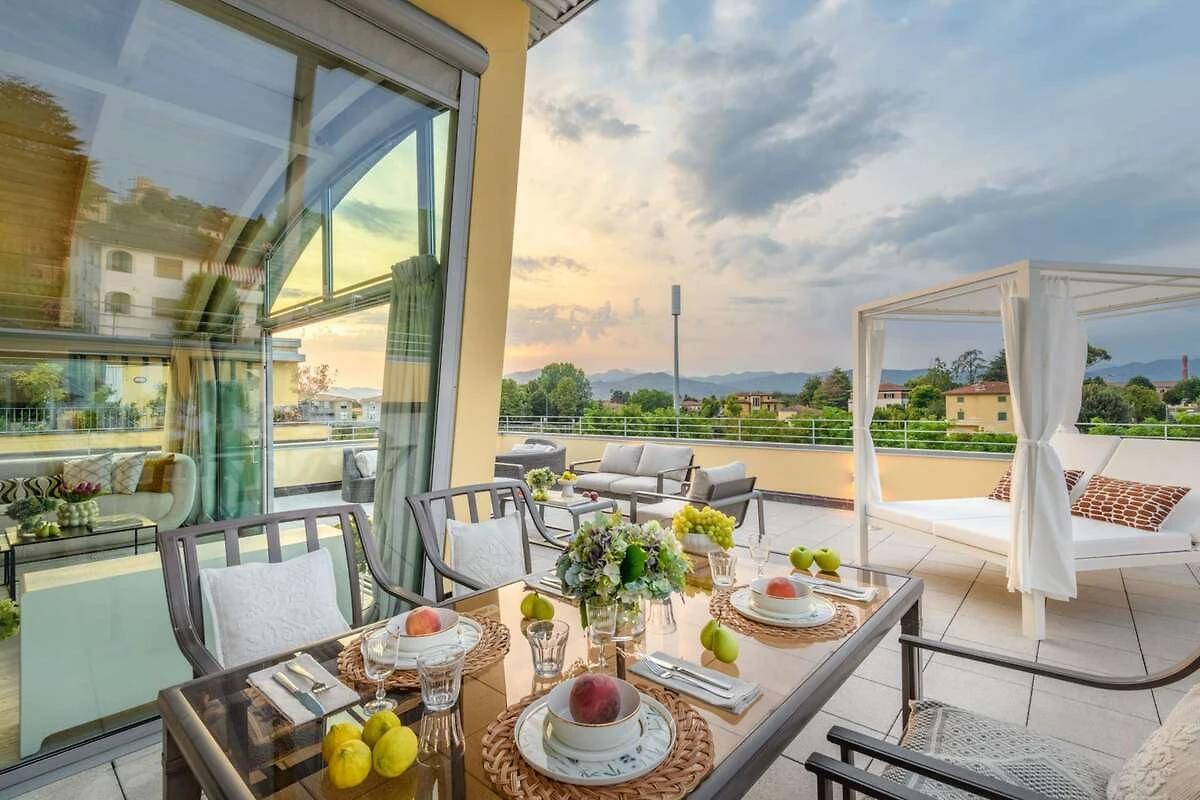 Dieses Penthouse liegt in einer ruhigen Straße mit kostenlosen Parkplätzen und verbindet Komfort mit Ruhe. Entdecken Sie lokale Schätze wie handwerkliche Bäckereien, Cafés und Eisdielen nur wenige Schritte entfernt. Der Bahnhof Lucca ist nur fünf Gehminuten entfernt und bietet bequemen Zugang zu den Wundern der Toskana: Florenz, Chianti und Cinque Terre. Dank des Aufzugs gelangen Sie bequem in dieses luxuriöse Refugium. Hier trifft moderne Eleganz auf den unvergessenen Charme Italiens und sorgt für ein unvergessliches Wohnerlebnis.