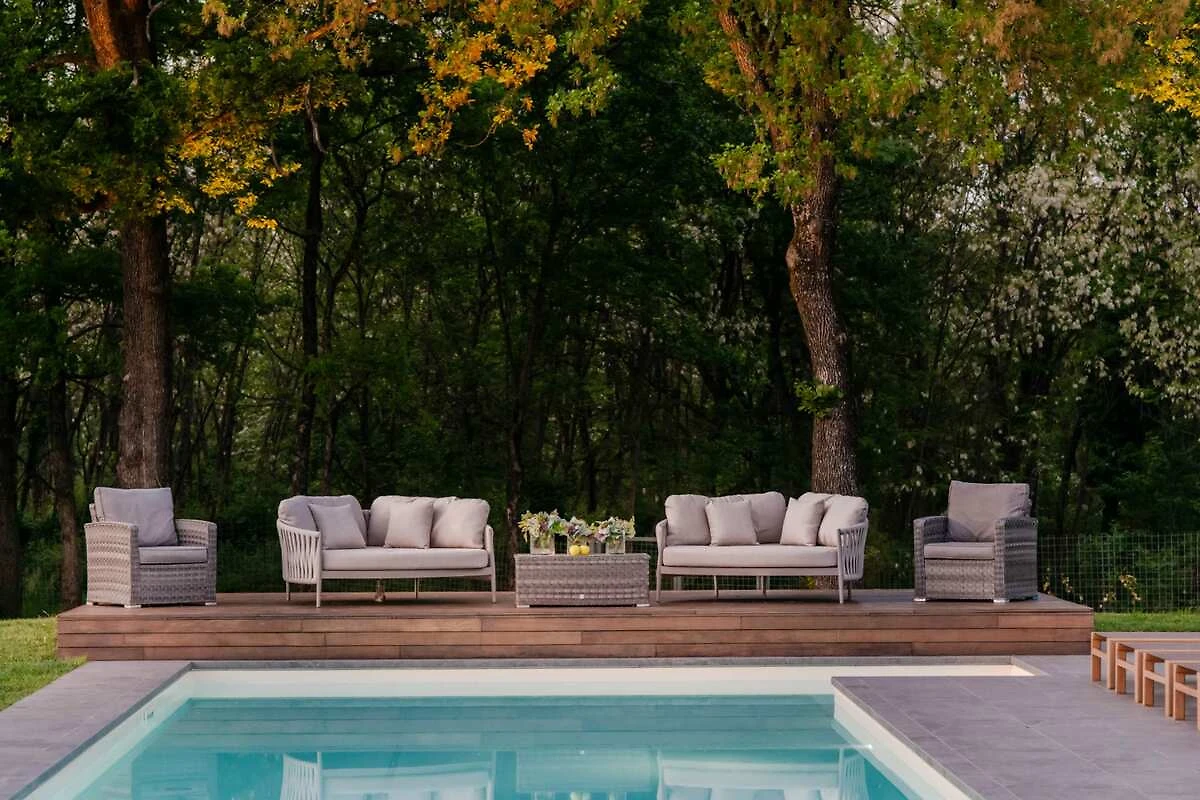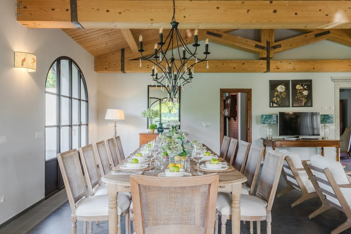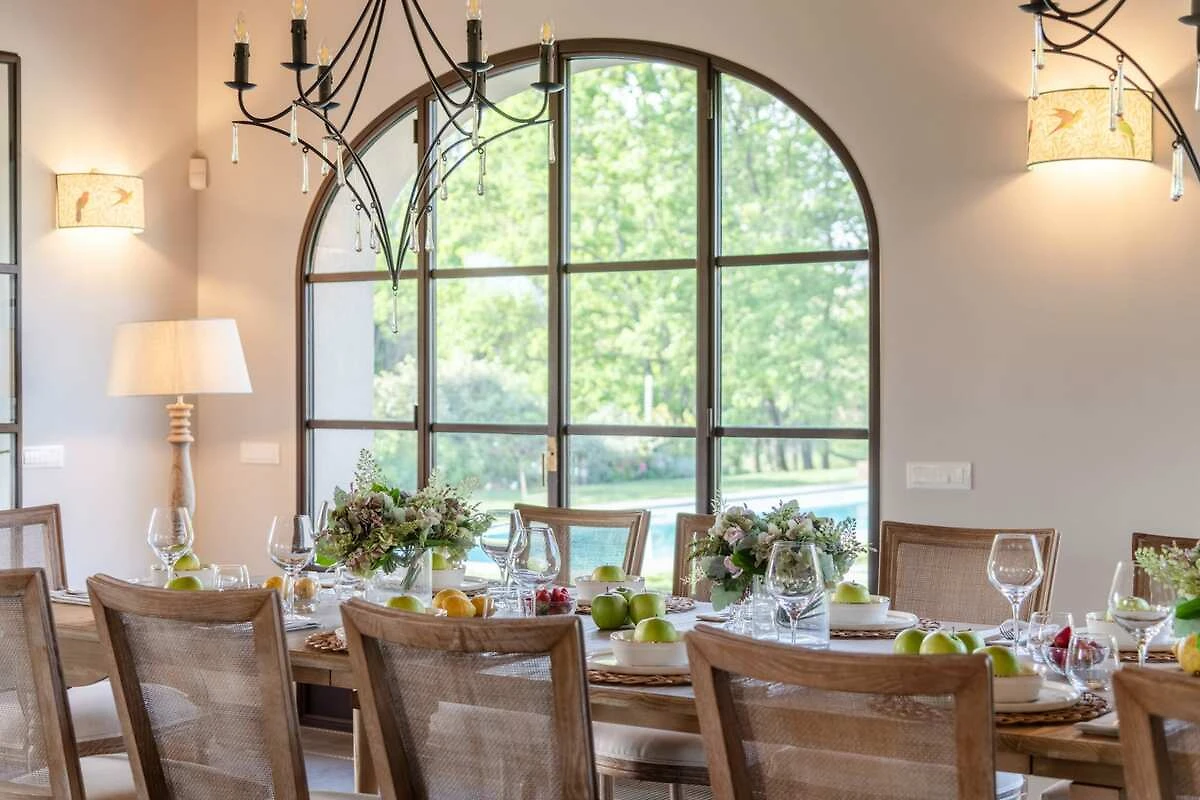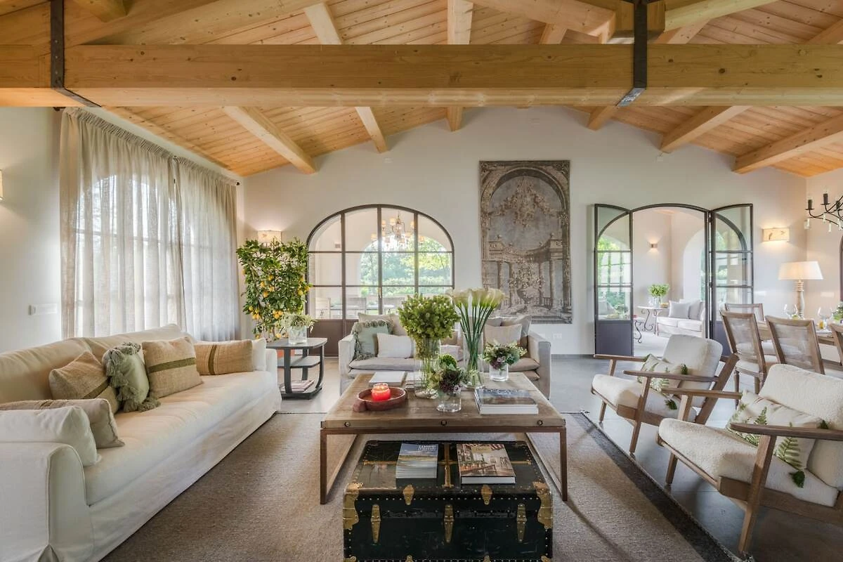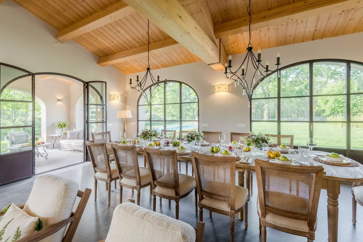 Das Bauernhaus verfügt über mehrere Wohnzimmer, eine voll ausgestattete Küche, eine Waschküche und ein wunderschön restauriertes Zitronenhaus, das in einen großen Ess- und Wohnbereich umgewandelt wurde. Gäste können ihre Mahlzeiten im verglasten Essbereich am Pool genießen oder das üppige Grundstück und die waldreiche Umgebung der Villa erkunden. Das Anwesen verfügt über eine Ladestation für Elektrofahrzeuge (gegen eine tägliche Gebühr), einen Sicherheitsdienst im Außenbereich sowie alle Nebenkosten, Handtücher, Bettwäsche und die Endreinigung sind im Mietpreis inbegriffen.