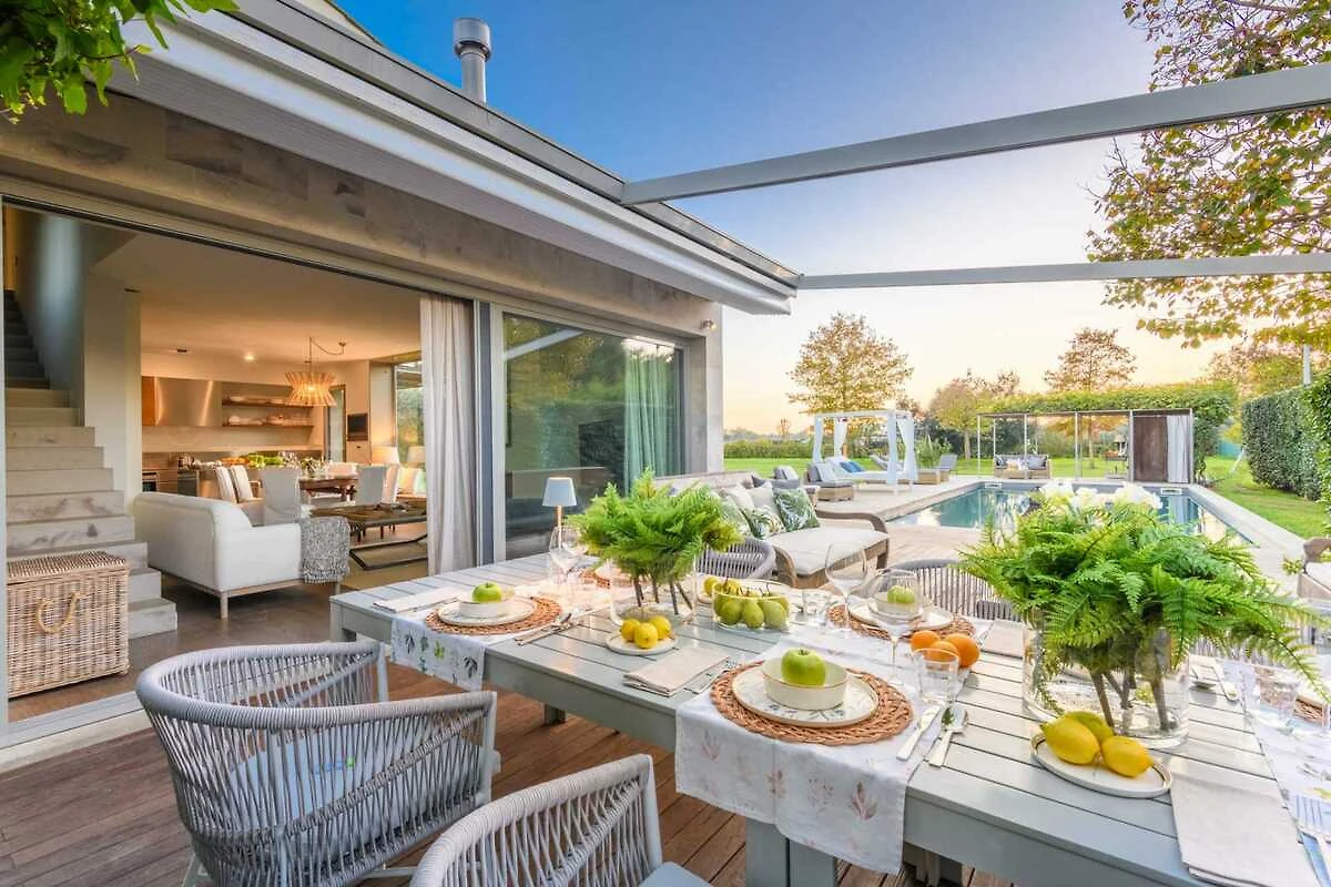 Küche(Wasserkocher, Toaster, Kaffeemaschine, Backofen, Mikrowelle, Spülmaschine, Kühlschrank, Tiefkühlschrank, Zitruspresse, ), Wohn/Esszimmer(TV, Esstisch, Sitzecke), Schlafzimmer(Doppelbett), Schlafzimmer(Doppelbett), Schlafzimmer(Doppelbett), Badezimmer(Dusche), Badezimmer(Dusche), Badezimmer(Dusche), Gartenmöbel, Babybett, Waschmaschine, Klimaanlage, Garten, Garten(umzäunt), Grill, Parkplatz, Pool(alleinige Nutzung), Hochstuhl, Bügeleisen, Föhn