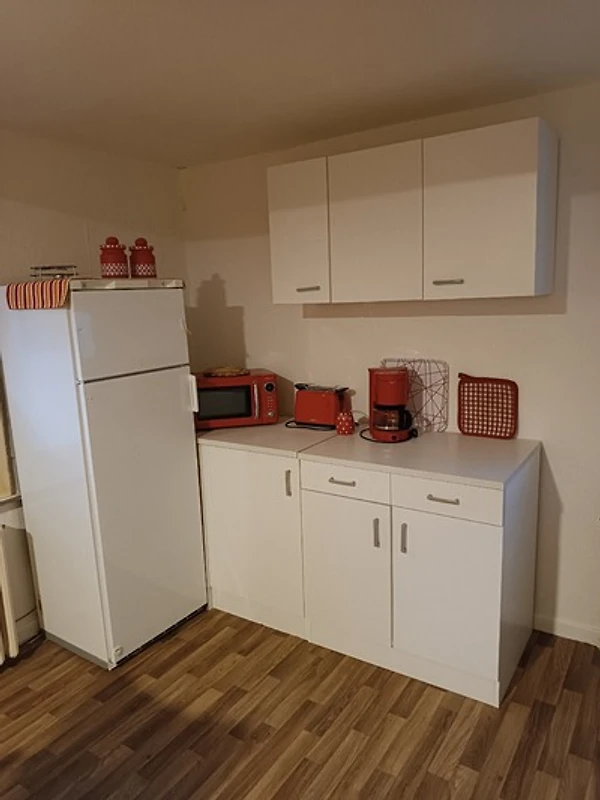 Die gut ausgestattete Küche besitzt unter anderem einen Toaster und eine Kaffeemaschine. In dieser Ferienwohnung sind Haustiere erlaubt.