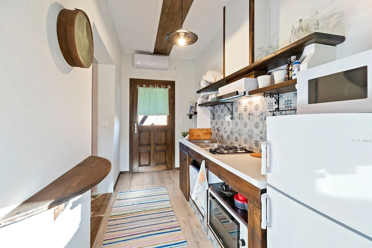 Das Apartment im ersten Stock verfügt über einen schönen Gartenbereich, in dem Sie im Grünen entspannen, auf den Gartenmöbeln im Freien speisen oder einfach die Sonne genießen können. Die Küche ist komplett ausgestattet mit einem Backofen zum Backen, einer Mikrowelle zum schnellen Aufwärmen und einem Kühlschrank, um Ihre Lebensmittel frisch zu halten.