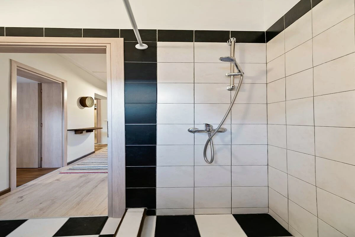 In der 1. Etage: (Wohnzimmer(TV, Esstisch), Küche(Backofen, Mikrowelle, Kühl-/Gefrierkombination), Schlafzimmer(Doppelbett king size), Schlafzimmer(Einzelbett, Doppelbett), Badezimmer(Badewanne oder Dusche, Toilette), Badezimmer(Badewanne oder Dusche, Toilette))
