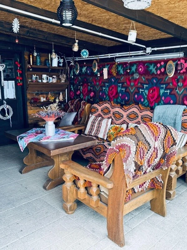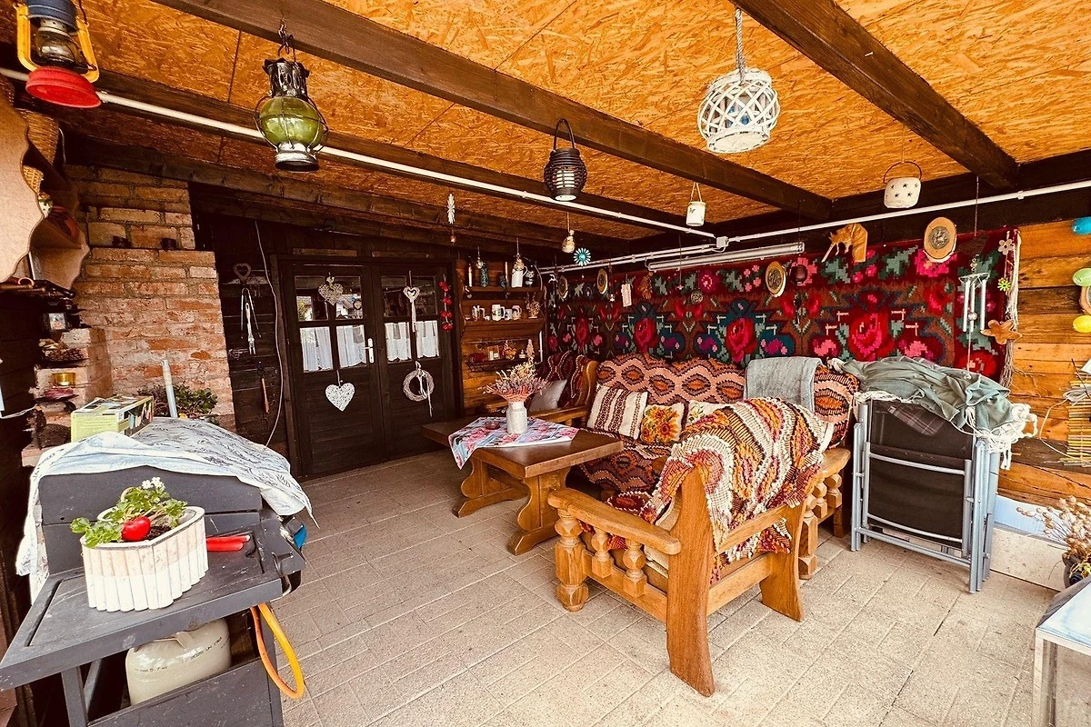 Im Pavillon finden Sie ein gemütliches Sofa, auf dem Sie ein Glas Wein oder ein Bier am wohlverdienten Lagerfeuer geniessen können.