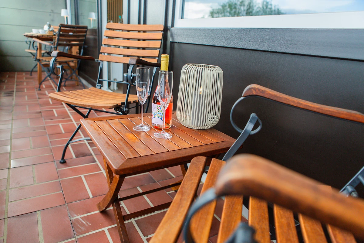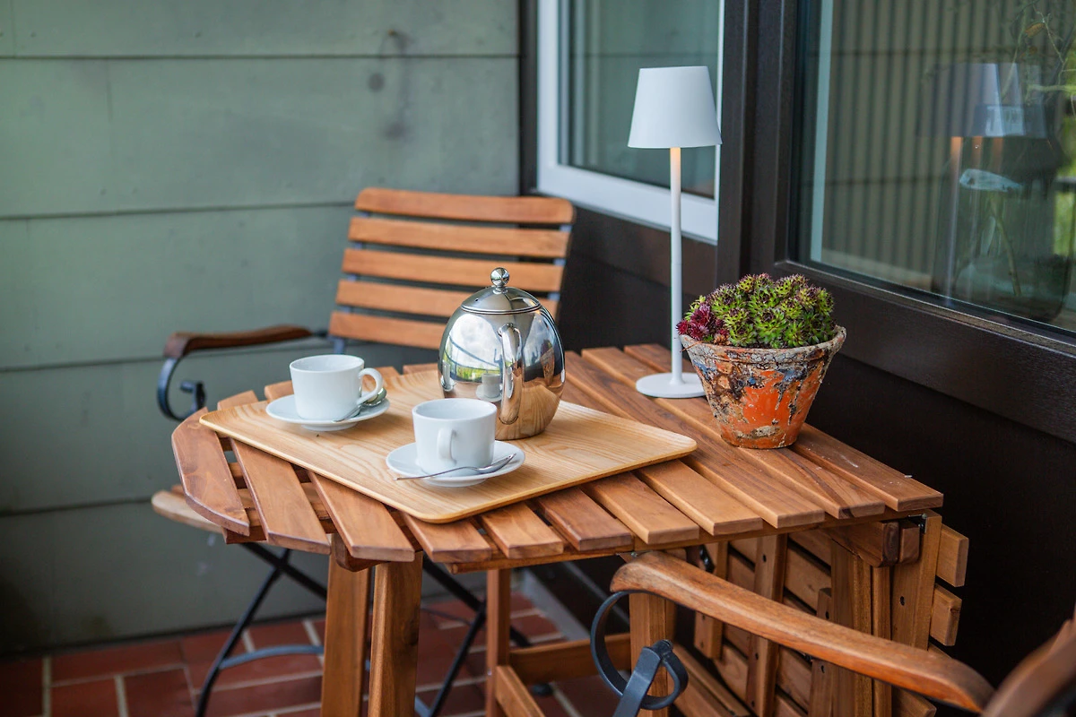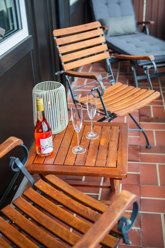 Geniessen Sie entspannte Stunden auf dem grosszügigen Balkon mit wunderschönem Blick ins Grüne – der ideale Ort zum relaxen auf der Sonnenliege oder ein Glas Wein am Abend.