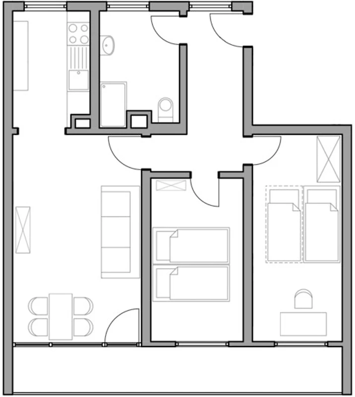 * 1 weiteres Schlafzimmer mit einem ausziehbaren Bett (ausgezogen 1,60m x 2,00m)