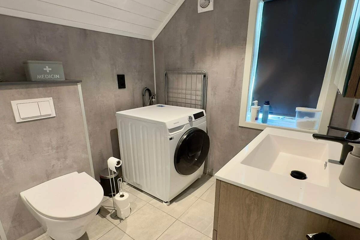 , Wohnzimmer(Doppelklappbett ), offene Küche(Kochherd(elektrisch), Dunstabzugshaube, Kaffeemaschine(Filter), Waffeleisen, Mikrowelle, Spülmaschine, Kühlschrank, Tiefkühlschrank(200-249L), Trockner, Waschmaschine), Wohn-/Schlafzimmer(45 m2)(TV(norwegische Fernsehsender), Radio), Schlafzimmer(Doppelbett), Schlafzimmer(Doppelbett), Schlafzimmer(2x Einzelbett), Badezimmer(Fußbodenheizung)(Waschbecken, Dusche, Toilette), Badezimmer(Fußbodenheizung)(Badewanne oder Dusche, Waschbecken, Toilette), Heizung(elektrisch), Terrasse(50 m2), Gartenmöbel, Grill, Parkplatz
