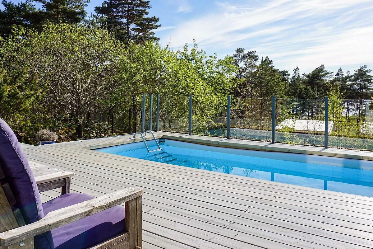 Ihre eigene Oase am Meer im südlichen Schärengarten von Strömstad! Willkommen in Ihrem Ferienparadies mit eigenem Pool, gelegen in sonniger, ruhiger und naturnaher Umgebung, wo Sie durch den Kiefernwald hindurch das Meer erahnen können. Das familienfreundliche Ferienhaus mit seinen großzügigen Veranden liegt auf Rävö, südlich von Strömstad. Hier wohnen Sie in einer ruhigen und angenehmen Umgebung in einem Ferienhausgebiet, umgeben von Küstenwäldern, dem Meer und Bademöglichkeiten in unmittelbarer Nähe. In der Umgebung gibt es einen Gemeinschaftsspielplatz und einen Fußballplatz für alle Arten von Ballspielen. Wandern Sie durch die abwechslungsreiche Landschaft mit ihren Kiefernwäldern, Sandstränden, Felsformationen und Kiesfeldern. Nur wenige Kilometer entfernt liegt Rossö mit einem Naturschutzgebiet und dem Nationalpark Kosterhavet, einem der artenreichsten Gebiete Schwedens. Dank seiner zentralen Lage – stadtnah und gleichzeitig am Meer – ist das Ferienhaus der perfekte Ausgangspunkt, um Strömstad und die Umgebung zu erkunden. Hier erwartet Sie ein Ferienhaus, das zum Spielen und Entspannen einlädt. Schon beim Betreten werden Sie von einer Tischtennisplatte und einem Unihockeytor begrüßt. Im Inneren empfängt Sie ein offener Wohnbereich, in dem die Diele in ein geräumiges Wohnzimmer mit bequemen Sitzgelegenheiten, einem Kaminofen und einem Esstisch übergeht. Eine Doppeltür führt auf die große Terrasse mit einem 2,4 x 5 m großen und 1,10 m tiefen Pool. Ebenfalls im Erdgeschoss befindet sich die Küche mit Herd, Mikrowelle, Kühl-/Gefrierschrank, Kaffeemaschine, Geschirrspüler und Hochstuhl sowie eines der drei WCs. Von der Diele führt eine Treppe in den ersten Stock mit drei Schlafzimmern: eines mit Doppelbett, eines mit zwei Einzelbetten und eines mit drei Einzelbetten. Außerdem gibt es eine Schlafnische mit einem 140 cm breiten Bett und ein weiteres WC. Vom Flur aus gelangen Sie auf einen Balkon mit Sofa. Im Untergeschoss befindet sich das Spielzimmer mit Billardtisch, einer bequemen Sitzgruppe und Fernseher – ein gemütlicher Ort für gesellige Stunden mit der Familie. WLAN ist im Haus verfügbar. Die großzügige Terrasse, die sich über drei Seiten des Ferienhauses erstreckt, umfasst den Pool sowie einen überdachten Bereich. Hier finden Sie einen Grill und Gartenmöbel – ein herrlicher Ort zum Schwimmen, Sonnenbaden, für ein gemütliches Frühstück oder entspannte Grillabende. Lassen Sie den Tag Revue passieren oder planen Sie Ausflüge für den nächsten Tag, während die Sonne im Nordwesten untergeht. Leihen Sie sich eines der Fahrräder des Ferienhauses aus und erkunden Sie die Umgebung nach Beeren oder Pilzen oder fahren Sie zum Badeplatz. In Strömstad erwartet Sie eine große Auswahl an Aktivitäten, eine vielfältige Gastronomieszene und gemütliche Einkaufsmöglichkeiten in kleinen, nah beieinander liegenden Geschäften. Oder genießen Sie einfach den Anblick der Boote im Hafen. Wenn Sie weitere Inseln und Schären entdecken möchten, bieten verschiedene Bootsausflüge vom Hafenzentrum zu Inseln wie Furholmen oder den Kosterinseln sowie ins benachbarte Norwegen an. Sie können auch ein Boot oder Kajak für Ihre eigenen Erkundungen mieten. Für Golfer gibt es in der Gegend mehrere 18-Loch-Golfplätze.