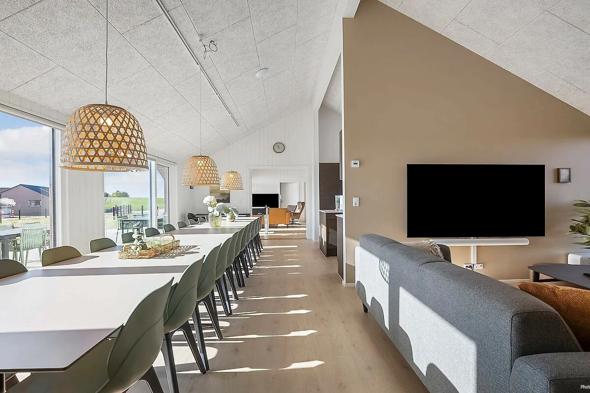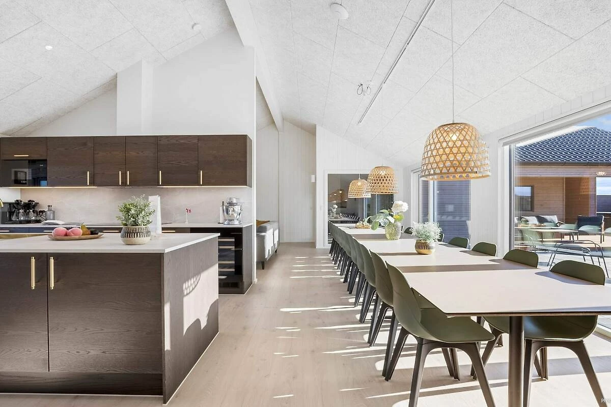 , Wohnzimmer(Trockner, Waschmaschine, Hochstuhl), Wohnzimmer(2x Einzelbett), Wohnzimmer(2x Einzelbett), Küche(Kochherd(2 Kochplatten), Kaffeemaschine, Backofen, Mikrowelle, Spülmaschine, Kühlschrank, Tiefkühlschrank(200-249L), Waschbecken), Wohn-/Schlafzimmer(TV(Deutsch Fernsehsender, dänische Fernsehsender, norwegische Fernsehsender, schwedische Fernsehsender)), Schlafzimmer(Doppelbett), Schlafzimmer(Doppelbett), Schlafzimmer(Doppelbett), Schlafzimmer(Doppelbett), Schlafzimmer(Doppelbett, 2x Etagenbett), Schlafzimmer(Doppelbett, 2x Etagenbett), Schlafzimmer(2x Einzelbett), Schlafzimmer(2x Einzelbett), Badezimmer(Waschbecken, Dusche, Toilette), Badezimmer(Waschbecken, Dusche, Toilette), Badezimmer(Waschbecken, Dusche, Toilette), Badezimmer(Waschbecken, Dusche, Toilette), TV(Deutsch Fernsehsender, dänische Fernsehsender, norwegische Fernsehsender, schwedische Fernsehsender), Spielkonsole, Kühlschrank, Whirlwanne(im Garten, erwärmt, 5 Personen), Dusche, Sauna(im Garten, 5 Personen), Heizung(elektrisch), Gartenmöbel, Liegestühle, Pool(im Innenbereich), Spielgeräte, Tischtennisplatte, Tischfußball, Dart, Billard