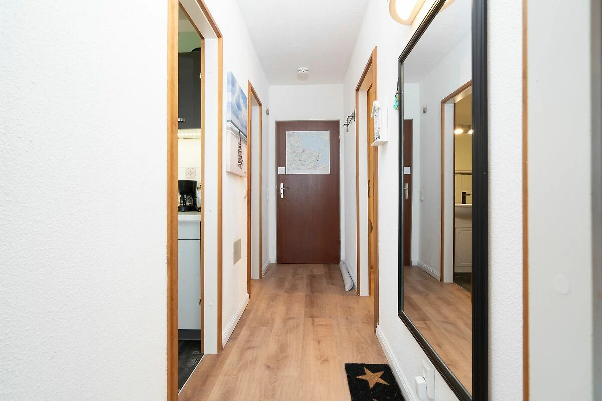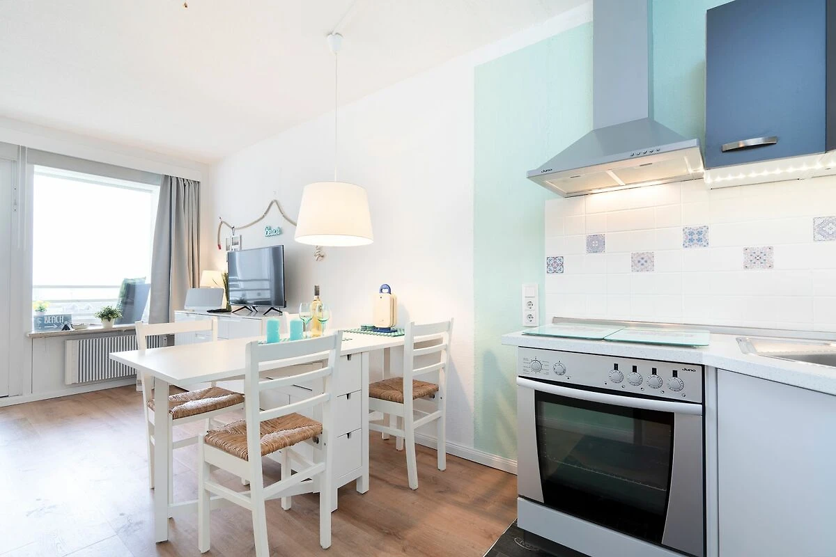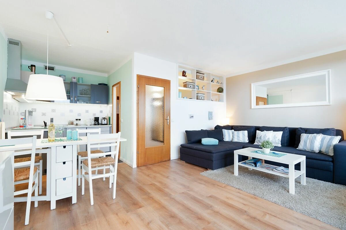 Diese gemütliche 2-Raum-Ferienwohnung ist ein wunderbares Domizil für Ihren entspannten Strandurlaub. Vom Balkon können Sie einen tollen Blick in die Lübecker Bucht genießen. Im kombinierten Wohn-und Essbereich mit seinen maritimen Elementen kommen Sie schnell in Urlaubsstimmung. Die zum gemütlichen Wohn-/Essbereich offene Küche ist mit Spülmaschine, Backofen und Herd ausgestattet. Im Schlafraum steht ein französisches Bett (140 cm x 200 cm). Im Wohnbereich steht zudem ein Schlafsofa. Das Duschbad ist innliegend. Zum Strand sind es nur wenige Fußschritte. PKW-Stellplatz inklusive.