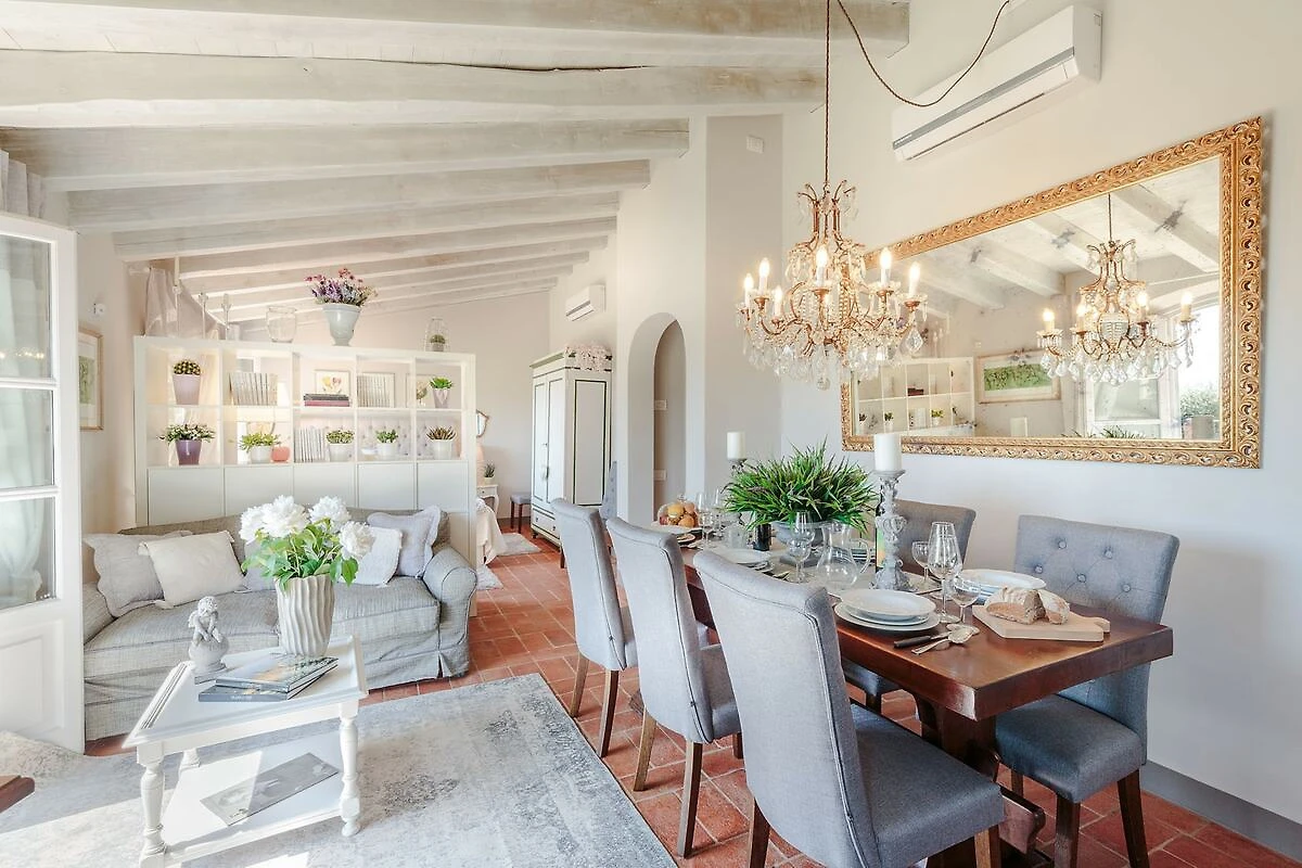 Genießen Sie den Outdoor-Lifestyle auf der Poolterrasse – perfekt für Cocktails bei Sonnenuntergang und unvergessliche Abende. Der schattige Essbereich ist mit einer voll ausgestatteten Küche, einem Grill und einem Holzofen für Pizza ausgestattet – ideal für Mahlzeiten im Freien. Jedes Haus ist komfortabel gestaltet und verfügt über Klimaanlage und Highspeed-WLAN, ohne dabei das charmante Ambiente eines Bauernhauses zu vernachlässigen. Gemütliche Essbereiche und einladende Wohnbereiche schaffen die perfekte Atmosphäre zum Entspannen und für die gemeinsame Zeit mit Ihren Lieben.