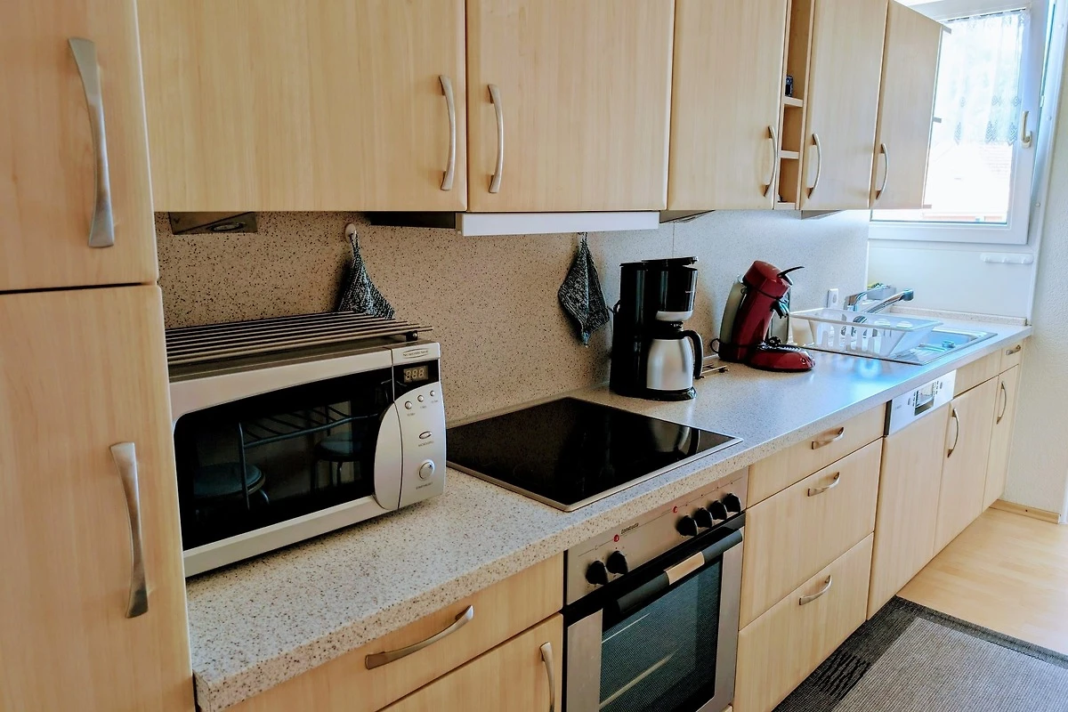 ✅ Gemütliche Ausstattung - Voll ausgestattete Küche, modernes Bad, grosse möblierte Dachterrasse mit tollem Ausblick, gemütliche Schlafzimmer mit Doppelbett, grosszügiger Flur (Platz für Garderobe und Koffer), Motorräder und Fahrräder können nach Absprache untergestellt werden (Lademöglichkeit für E-Bikes)