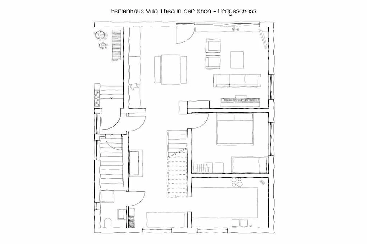 Das 4-Sterne-Ferienhaus Villa Thea in der Rhön **** ist der perfekte Rückzugsort für Naturliebhaber und Ruhesuchende. Das großzügige Anwesen (1000m2) und im Jahr 2023 kernsanierte Haus bietet für ideal bis 8 und max. 13 Personen viel Platz und Komfort auf 170qm.