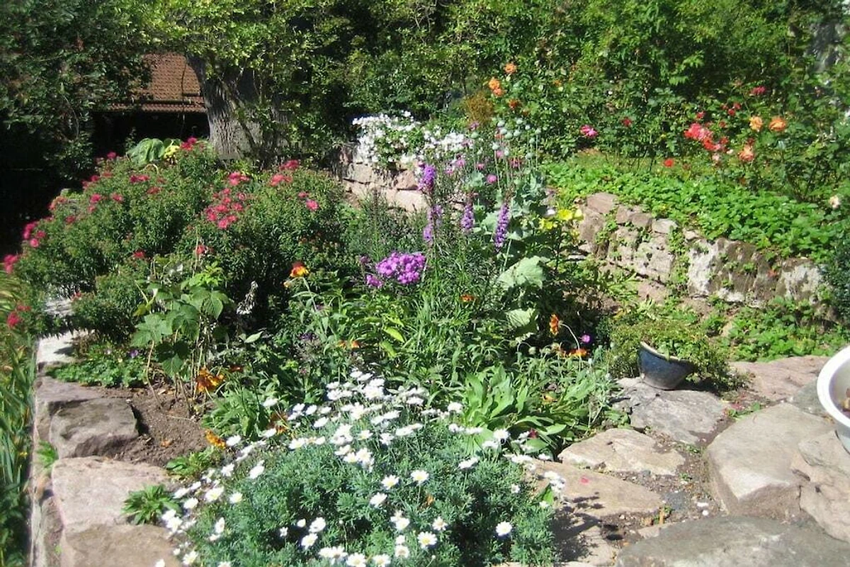 Das Besondere an der Villa Thea: die Lage! Extrem ruhig und idyllisch in einem großen, sonnigen Terrassengarten voller Blumen, Obst und mit herrlichem Rhöner Weitblick. Nicht zu vergessen: die sagenhaften Sternennächte!