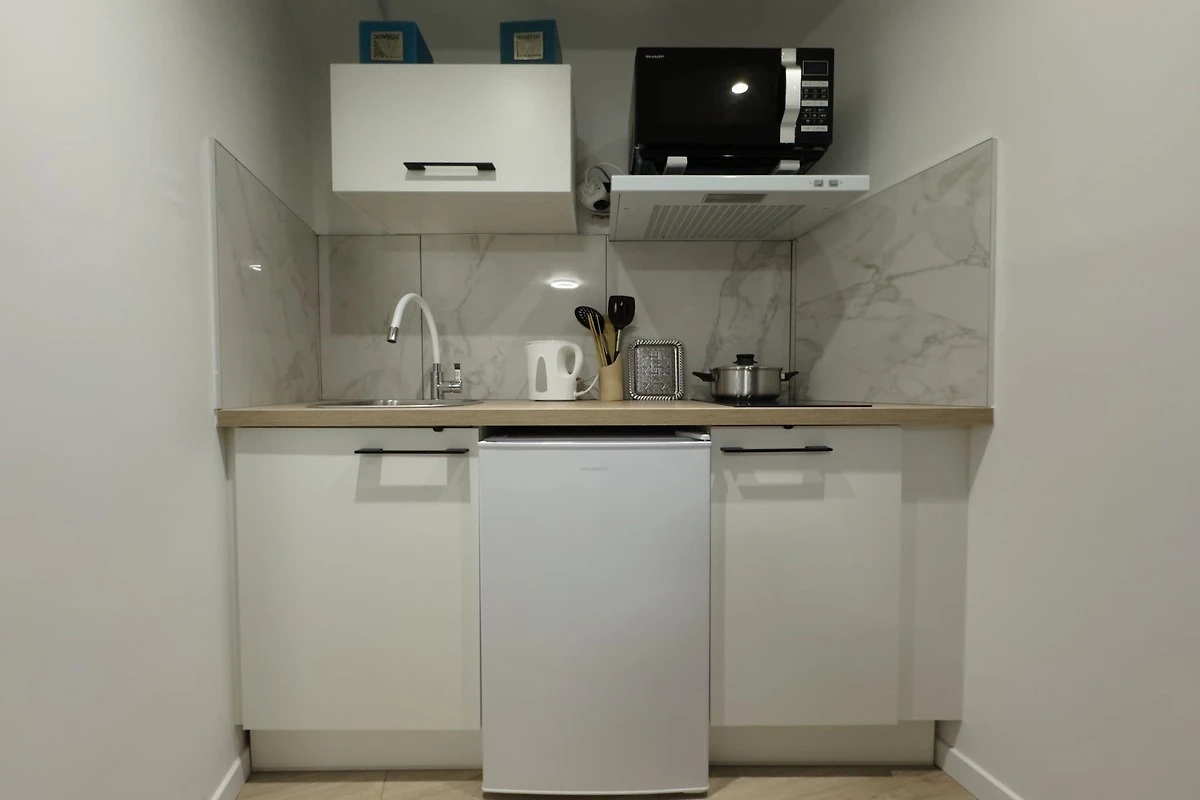 Das Apartment verfügt über ein gemütliches Schlafzimmer mit Doppelbett und ein bequemes Schlafsofa im Wohnzimmer und ist somit ideal für Paare, Freunde oder kleine Familien. Die offene Küche ist komplett mit modernen Geräten ausgestattet, darunter ein Induktionskochfeld, eine Mikrowelle, eine Kaffeemaschine und alles, was Sie zum Zubereiten von Mahlzeiten benötigen. Ein heller Wohnbereich mit Fernseher, kostenlosem WLAN und Elektroheizung sorgt für ein entspanntes und vernetztes Erlebnis während Ihres gesamten Aufenthalts.