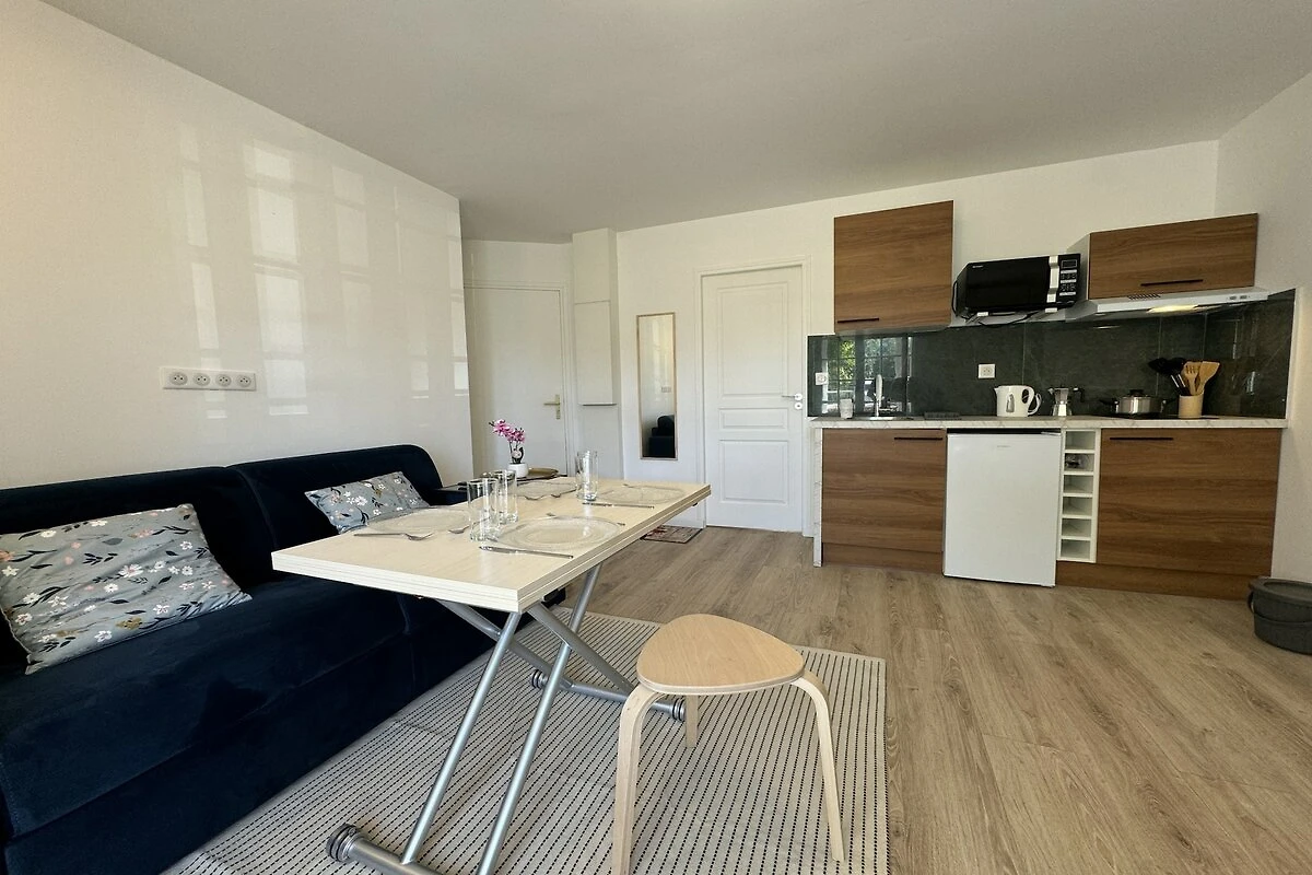 Dieses elegante, 42 m² große Apartment bietet einen hellen und ruhigen Rückzugsort nahe dem Zentrum von Le Mans. Es bietet Platz für bis zu vier Gäste und ist ideal für Paare, kleine Familien oder Geschäftsreisende, die eine stilvolle und gut gelegene Unterkunft suchen. Mit privater Terrasse, Gartenzugang und Parkplätzen auf dem Gelände vereint es Charme, Komfort und Bequemlichkeit.
