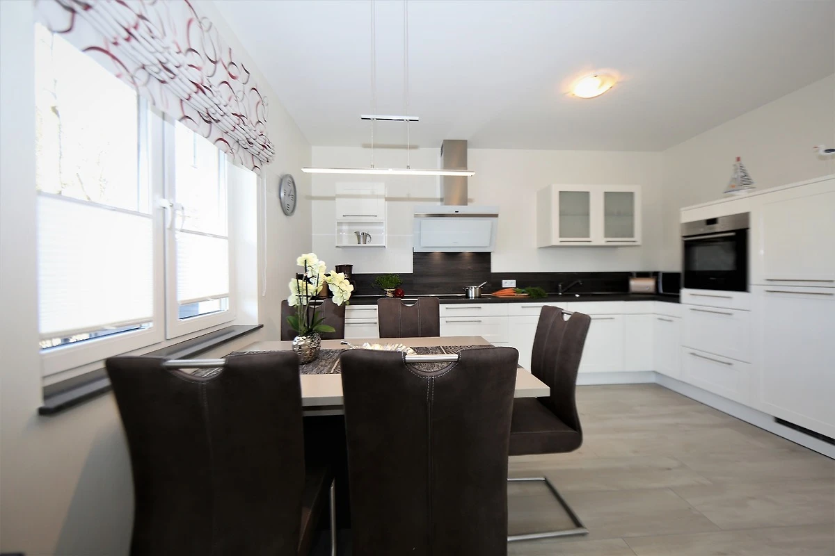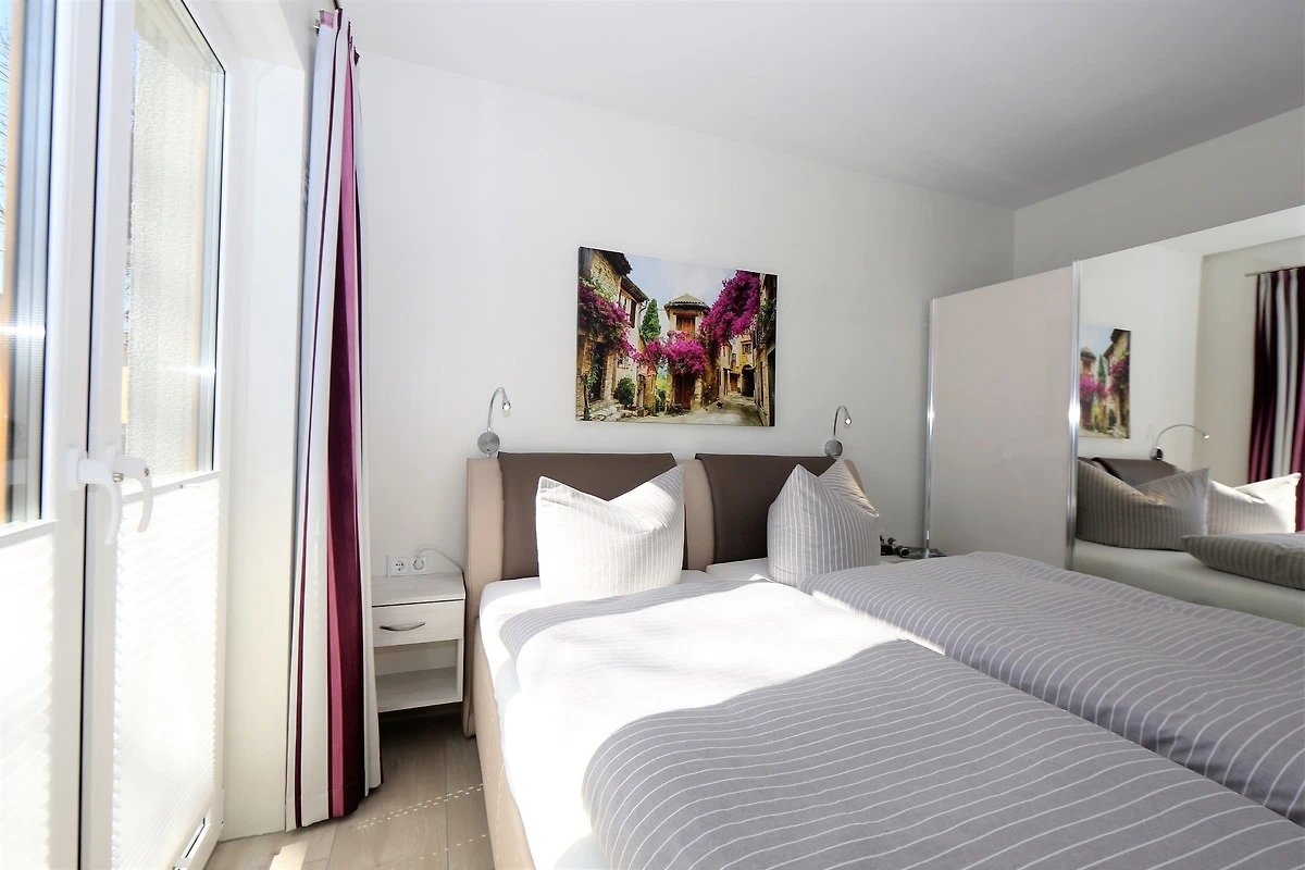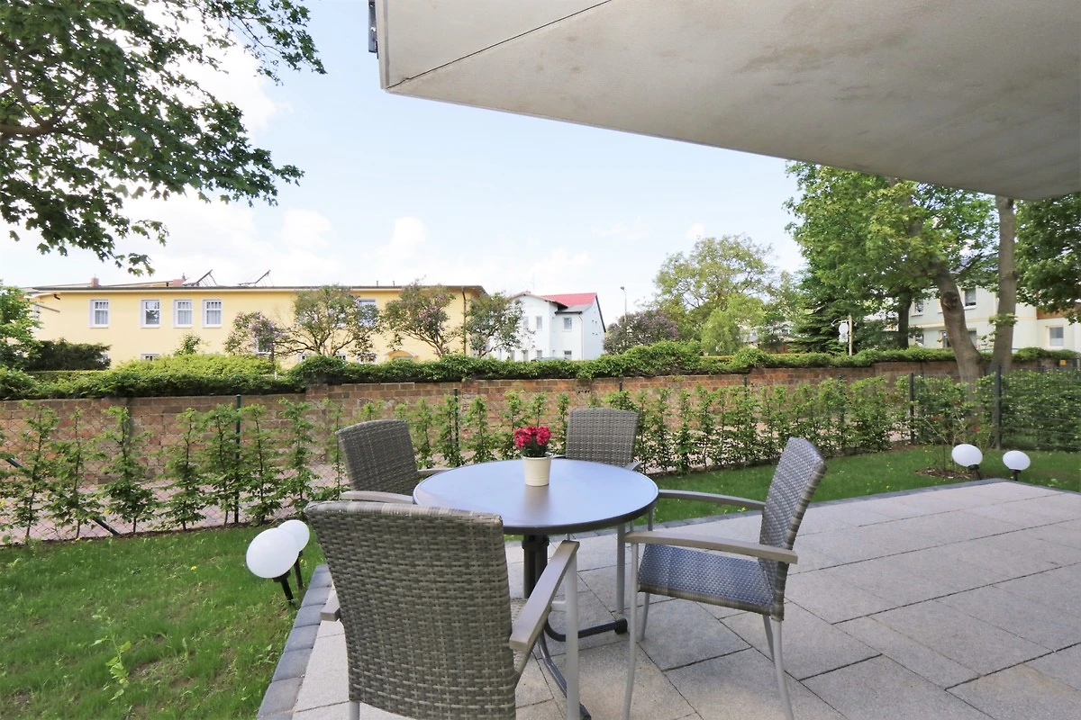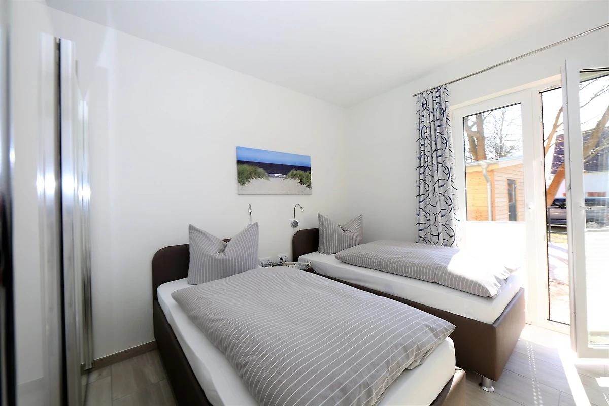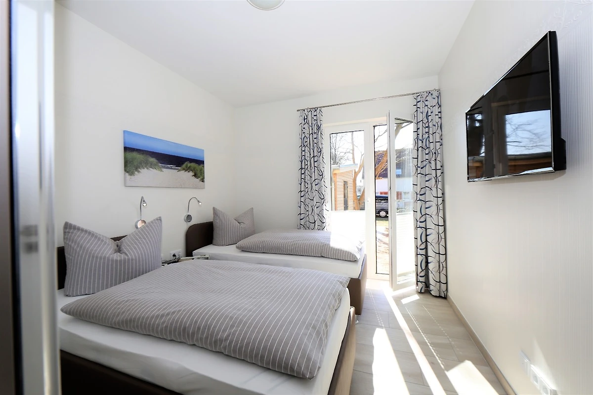 Dieses hochwertig und moderne 3-Zimmer Appartement ist 82 qm gross und befindet sich im Erdgeschoss der 2016 neu erbauten Ahlbecker Suiten. Die Wohnung ist für 2-4 Personen perfekt geeignet. Im hell eingerichteten Wohnbereich erwartet sie eine behagliche Polstergarnitur zum Relaxen, ein moderner Couchtisch sowie ein Esstisch und einem Flat-TV mit Radio. Die im Wohnraum integrierte und moderne Küchenzeile ist mit Cerankochfeld, Backofen, Mikrowelle, Geschirrspülmaschine und Kühlschrank ausgestattet. Die hellen Schlafzimmer verfügen über komfortable Betten, einem grosszügigen Kleiderschrank und einen TV. Ein Schlafzimmer ist ausgestattet mit einem Doppelbett mit getrennten Matratzen (90x200), das zweite Schlafzimmer verfügt über 2 Einzelbetten (je 90 x190). Im modernen und freundlichen ausgestatteten Badezimmer finden Sie eine ebenerdige Echtglasdusche, einen schönen Waschtisch und WC. Zusätzlich befindet sich in der Wohnung ein Gäste-WC. Ebenso steht den Gästen im Appartement eine Waschmaschine und ein Trockner zur Verfügung. Für eine behagliche Wärme an kälteren Tagen sorgt in der kompletten Wohnung die Fussbodenheizung. Über den Wohnbereich und die beiden Schlafzimmer erreichen Sie die Terrasse.