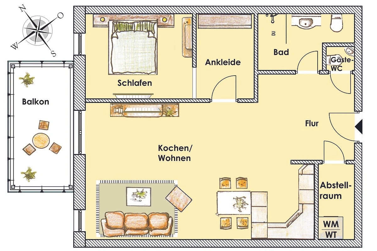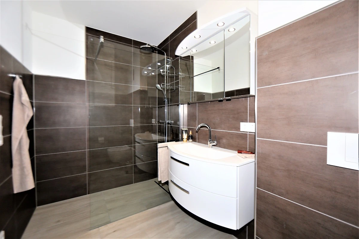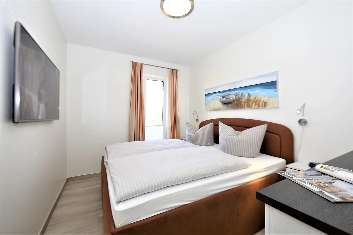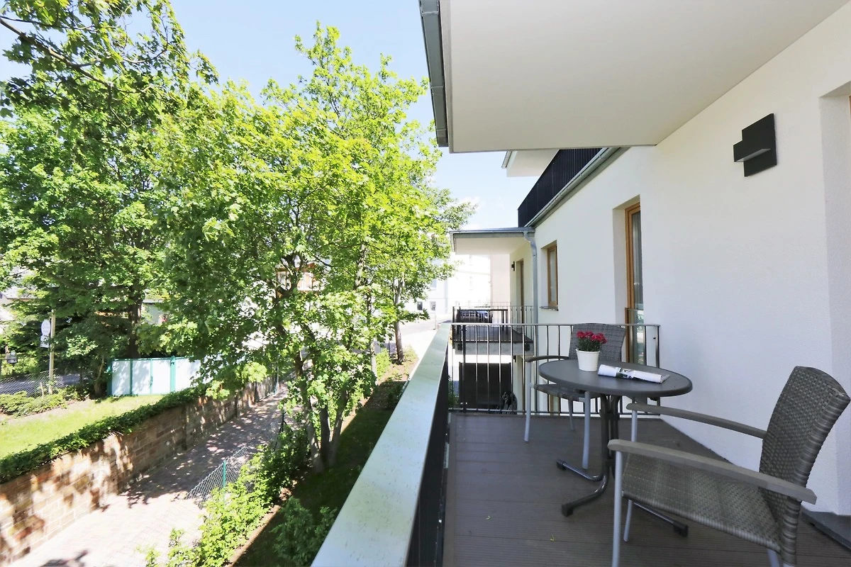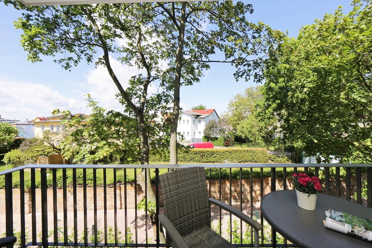 Das liebevoll und mit Geschmack eingerichtete 62 qm grosse Zwei-Zimmer-Appartement befindet sich im 1.Obergeschoss der 2016 errichteten Anlage "Ahlbeck Suiten", ca. 300 Meter vom Strand entfernt. Das helle und moderne Wohnzimmer ist mit einem Esstisch, der bis zu 4 Personen Platz bietet, einer gemütlichen Couch (mit Schlaffunktion) und einem Sessel mit Couchtisch eingerichtet. In den Wohnraum ist eine Vollküche mit Backofen, Mikrowelle, Ceranfeld, Kühlschrank, Geschirrspüler , ... integriert. Direkt vom Wohnzimmer aus gelangt man zum möblierten, überdachten Balkon. Im Schlafzimmer stehen ein Doppelbett mit getrennten Matratzen (90x200), ein Schrank und ein TV zur Verfügung. Ein Ankleidezimmer sorgt für genügend Platz und Stauraum. Das Badezimmer ist mit grossem Waschtisch, einer ebenerdigen Echtglasdusche und WC ausgestattet. Zusätzlich verfügt das Appartement über ein Gäste-WC. Für eine behagliche Wärme an kälteren Tagen sorgt in der kompletten Wohnung eine Fussbodenheizung.