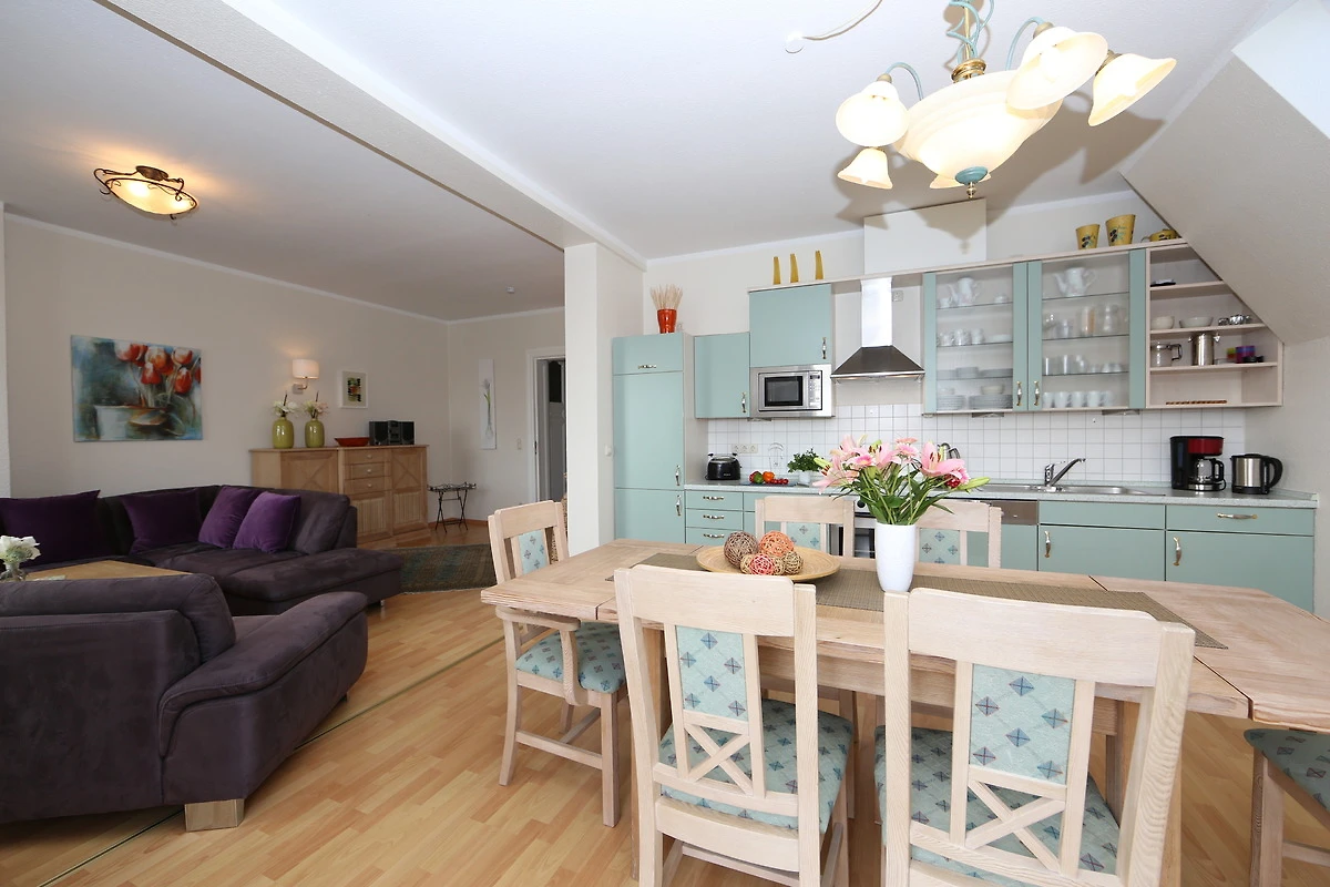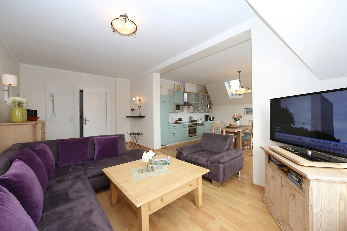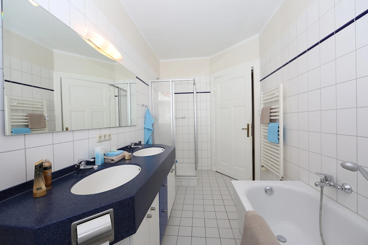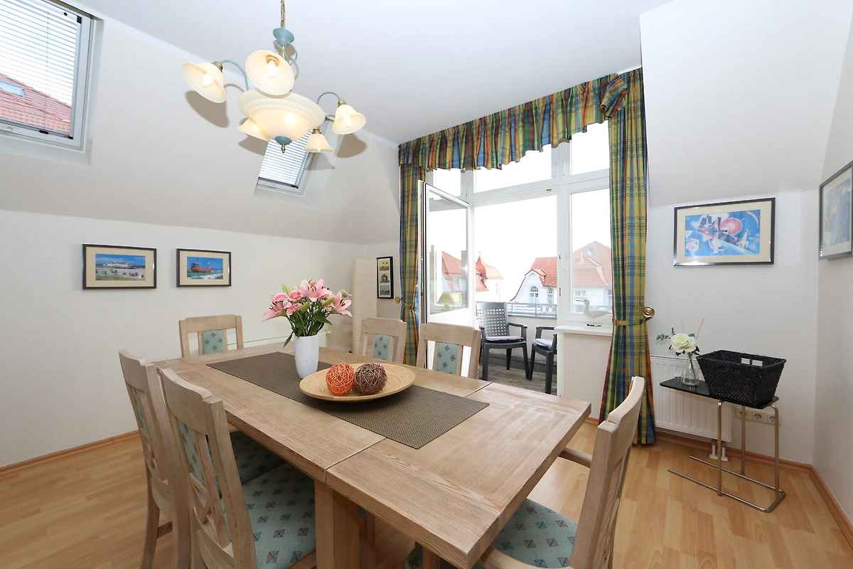 Dieses 105 qm grosse 3 Zimmer Appartement befindet sich im 2. Obergeschoss. Aus dieser Höhe geniessen Sie einen traumhaften Blick auf die Ostsee. Hier können 2-4 Personen Ihren Urlaub ganz nah am Meer verleben. Im grosszügigen, zur Ostsee ausgerichteten Wohnraum finden Sie eine gemütliche Polsterecke mit grossem Flat TV. Darüber hinaus beherbergt der Wohnraum die Vollküche incl. Kühlschrank, Geschirrspüler, Ceranfeld mit Backofen, Mikrowelle etc. sowie einen grossen Essplatz, der viel Platz für gemeinsame Mahlzeiten bietet. An den Essplatz grenzt ein kleiner Balkon zum Meer mit Blick auf die Bansiner Seebrücke. Beide Schlafräume sind jeweils mit einem Doppelbett mit getrennten Matratzen (90 x 200) eingerichtet. Ein grosser Kleiderschrank befindet sich in dem vor den Schlafzimmern befindlichen Flur. Von hier aus können Sie auch den südlich ausgerichteten Balkon mit Blick in den Buchenpark begehen, der viele Sonnenstunden verspricht. Ein grosses Badezimmer mit Fenster erfreut Sie mit Badewanne und Dusche sowie Waschtisch/WC.