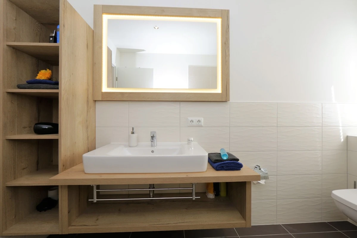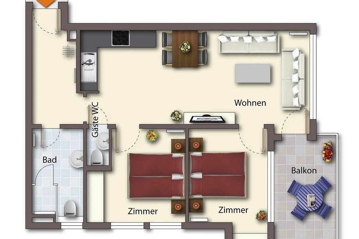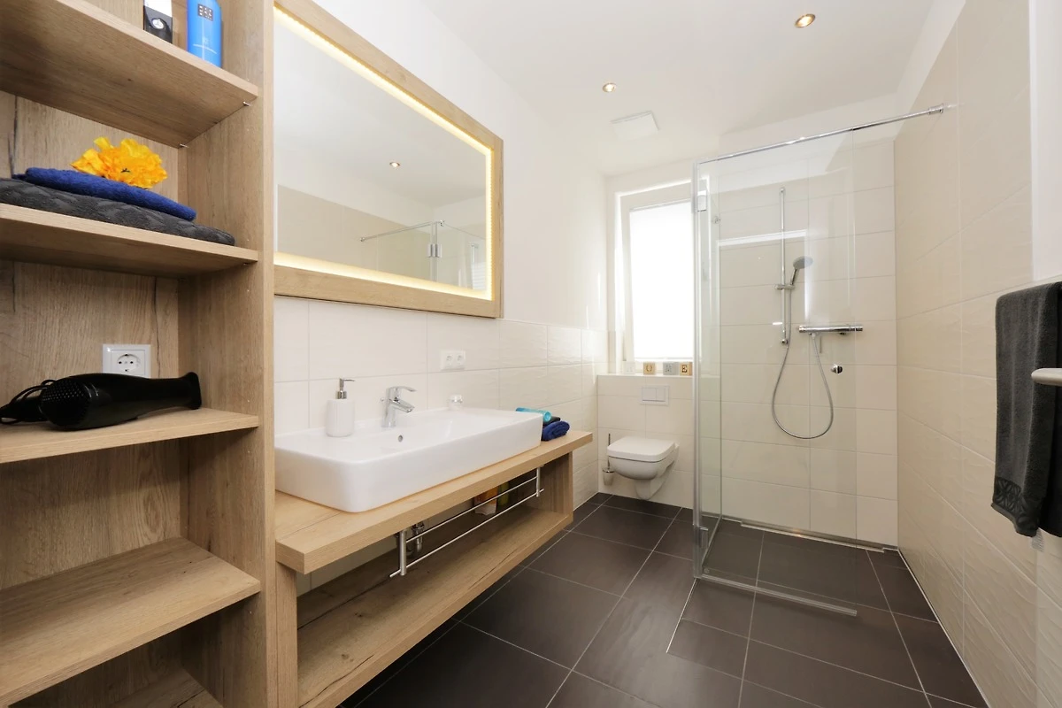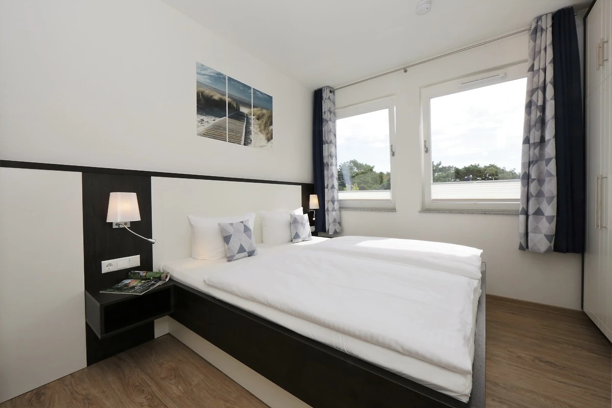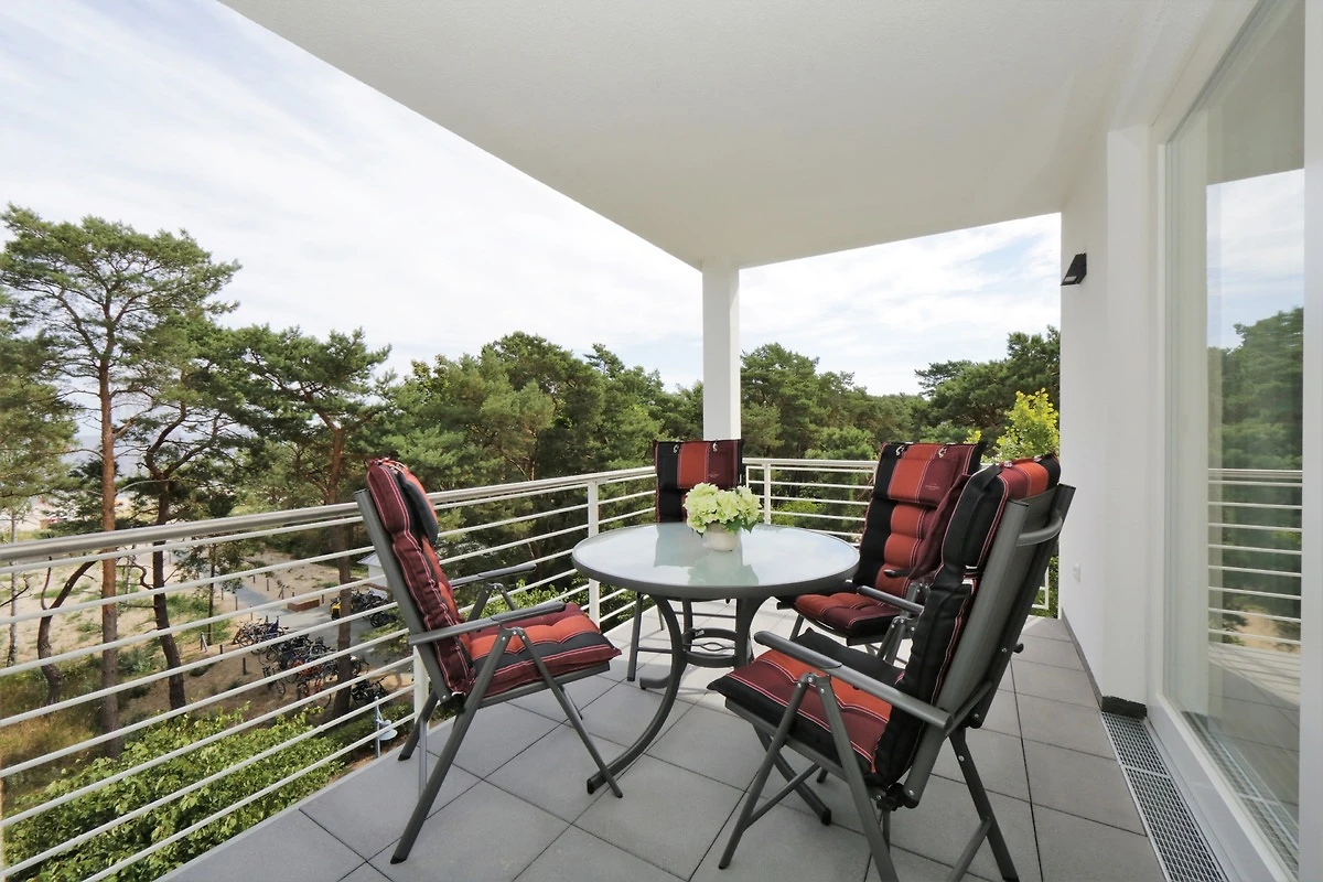 Dieses hochwertige, moderne 3-Zimmer Appartement ist 64 qm gross und befindet sich im 3. Obergeschoss der 2018 neu erbauten Strandresidenz. Die Wohnung mit 2 Schlafzimmern bietet 4 Personen reichlich Komfort im Urlaub. Im Wohnbereich erwarten Sie eine bequeme Polstergarnitur und Flat TV sowie ein Esstisch für gemeinsame Mahlzeiten. Die Küche mit Cerankochfeld, Backofen, Geschirrspülmaschine, Kühlschrank etc. ist ebenfalls offen im Wohnraum integriert. Über den Wohnbereich sowie eines der Schlafzimmer erreichen Sie den zur Promenade ausgerichteten Balkon mit herrlichem Blick auf die Ostsee und den vor dem Haus befindlichen Strandzugang. Hier haben Sie bereits zum Frühstück alles im Blick. Die Schlafzimmer verfügen jeweils über ein komfortables Doppelbett mit getrennten Matratzen (90 x 200) und einen Kleiderschrank. Eines der Schlafzimmer ist mit einem zusätzlichen TV ausgestattet. Das grosszügige moderne Badezimmer mit Fenster ist mit einer bodengleichen Dusche mit Echtglasabtrennung und Waschtisch/WC ausgestattet. Ausserdem steht Ihnen ein Gäste-WC zur Verfügung.