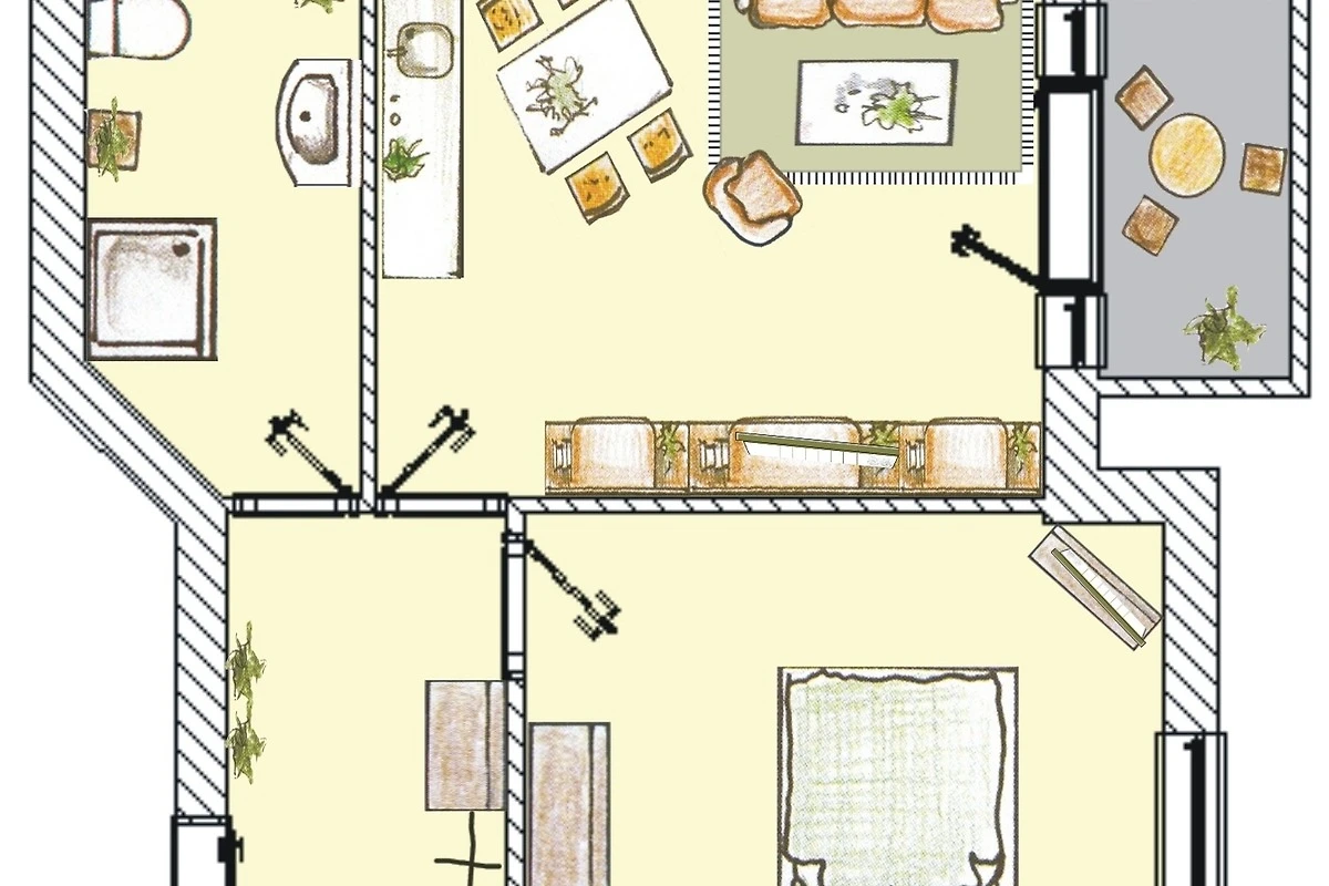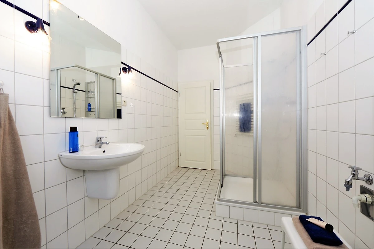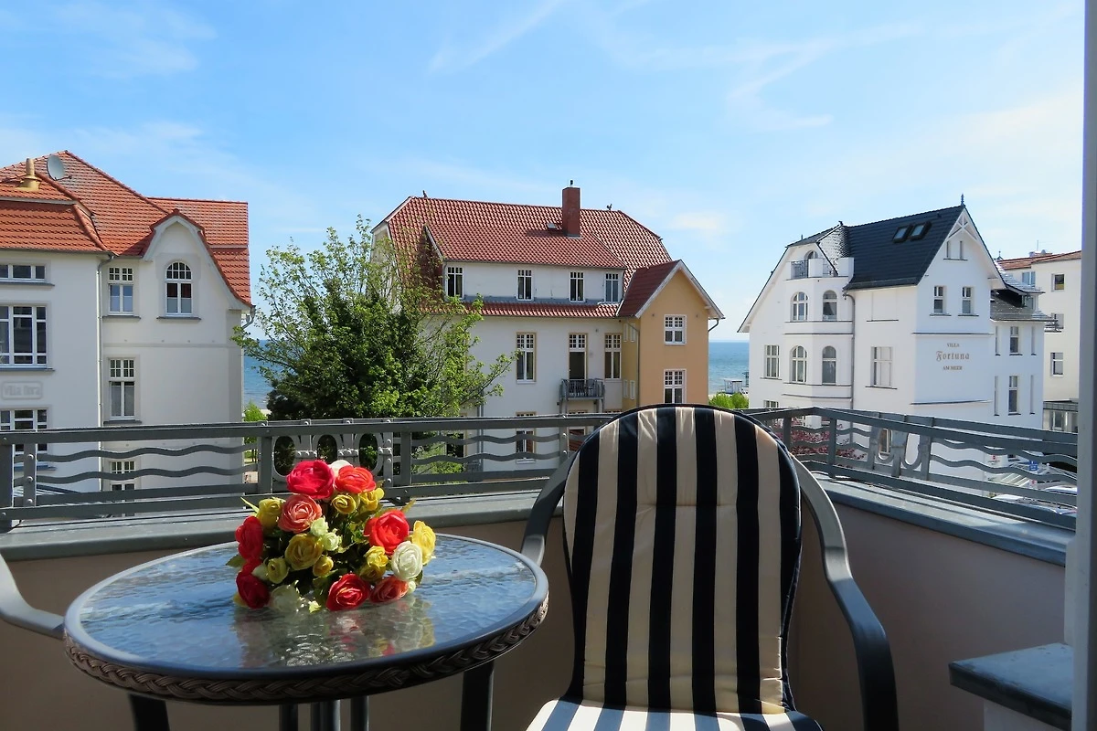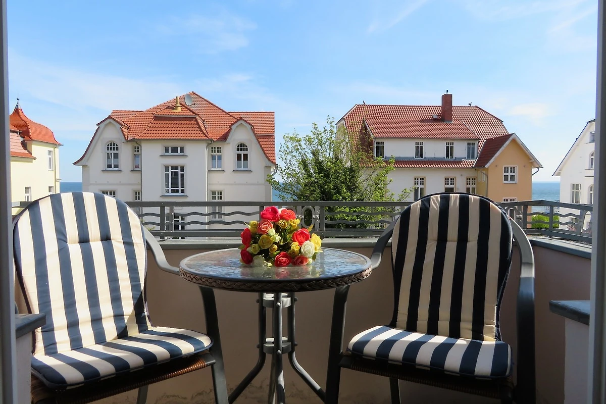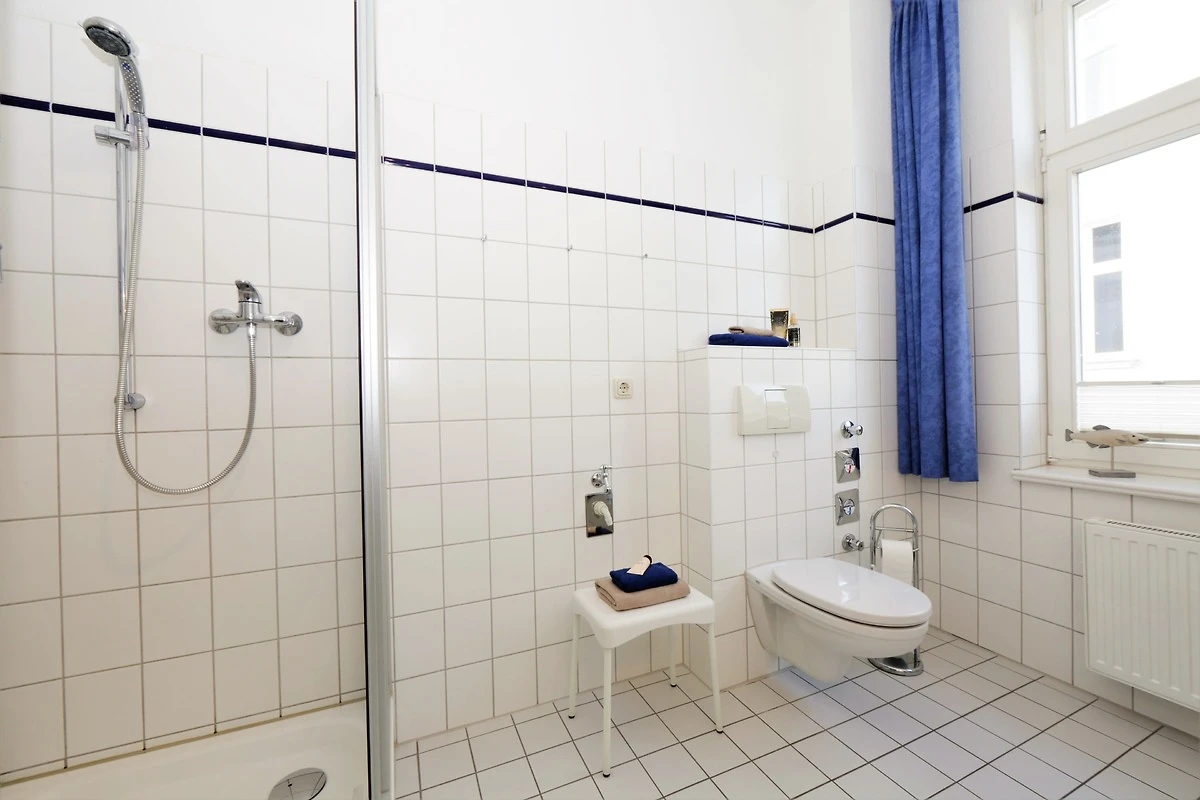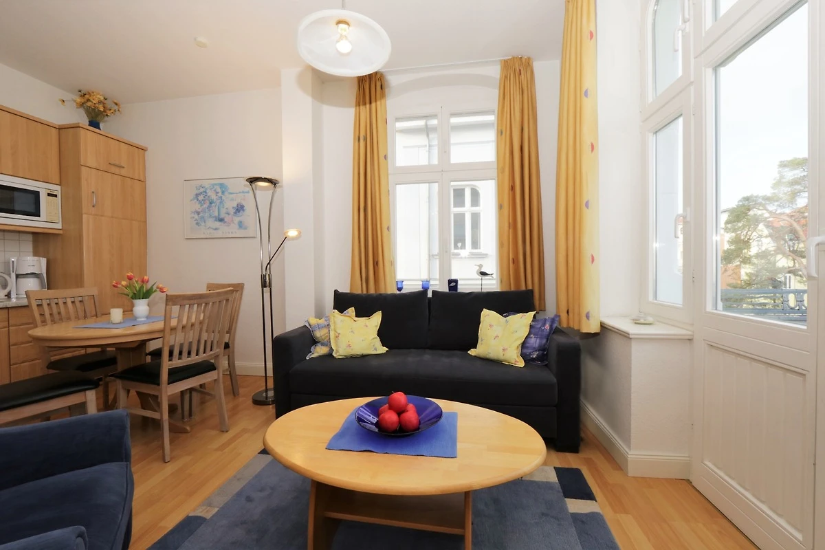 Dieses 50 qm grosse 2-Zimmer Appartement befindet sich im 1. Obergeschoss zur Meerseite. Sie können aus beiden Zimmern sowie von dem kleinen Balkon vorbei an der ersten Häuserreihe einen Blick auf die Ostsee erhaschen. Der Wohnraum ist mit einer gemütlichen Couch mit Schlaffunktion (Liegefläche 160 x 200) und einem Sessel eingerichtet. Flat TV und Radio sind selbstverständlich. Ebenfalls im Wohnraum integriert sind eine moderne Küchenzeile inklusive Ceranfeld, Kühlschrank, Geschirrspüler, Mikrowelle etc. sowie ein Essplatz für 4 Personen. Das Schlafzimmer bietet den Gästen ein Doppelbett mit getrennten Matratzen (90 x 200), ausreichend Schrankraum und einen zusätzlichen TV. Das grosszügige Bad ist mit Dusche und Waschbecken/WC ausgestattet.