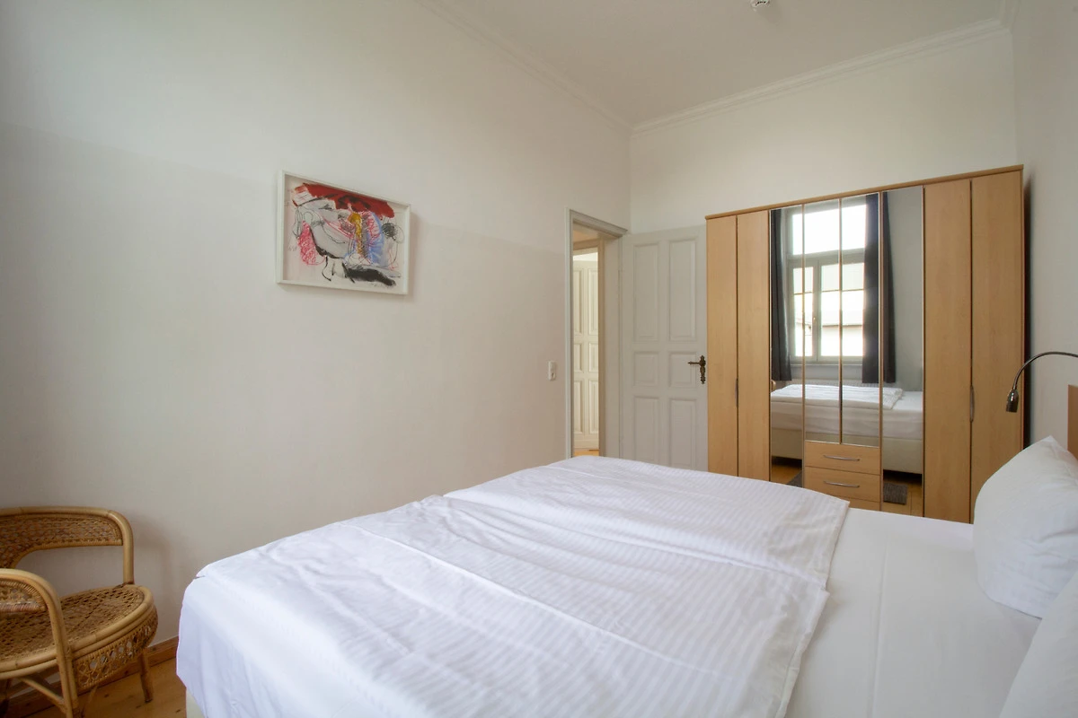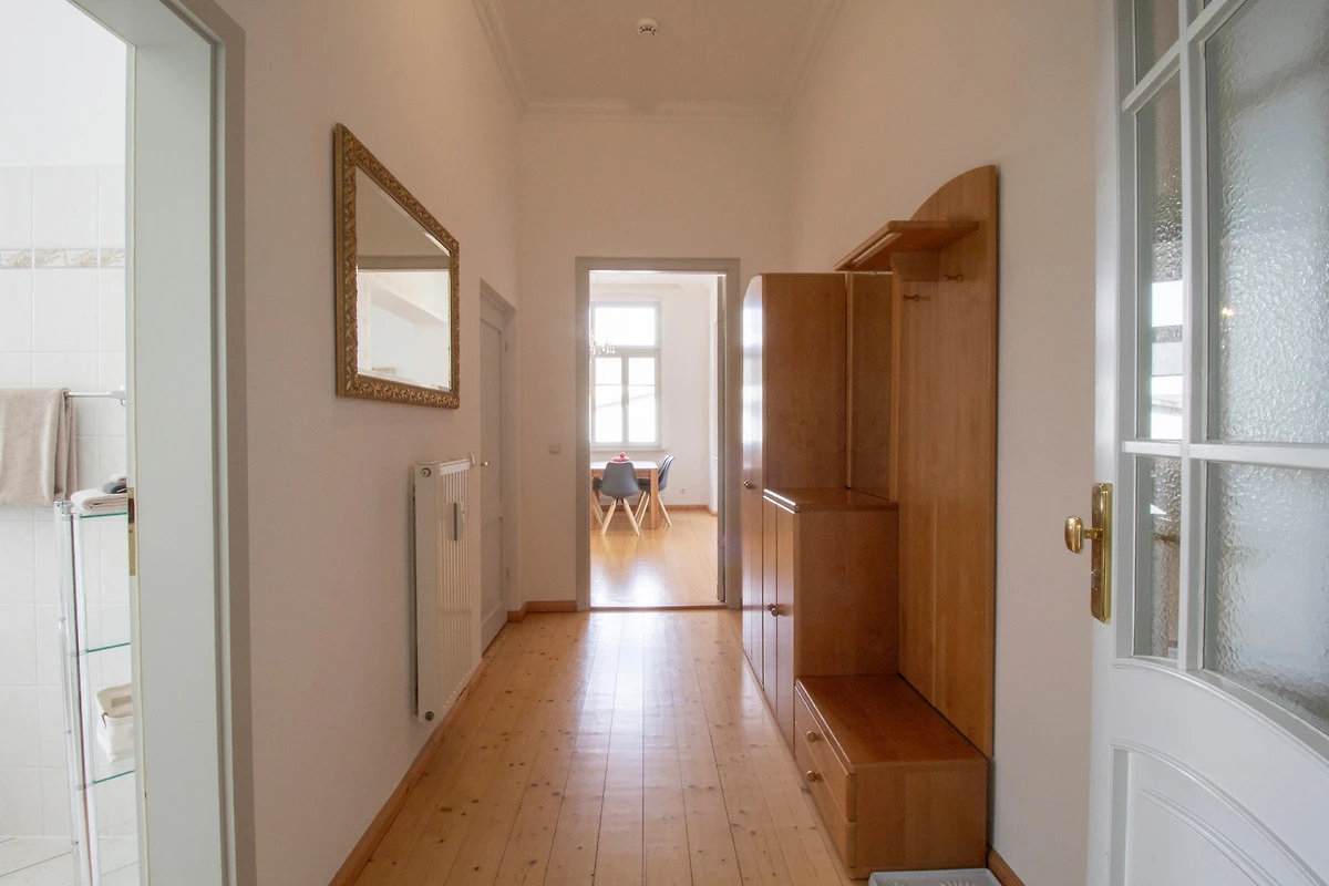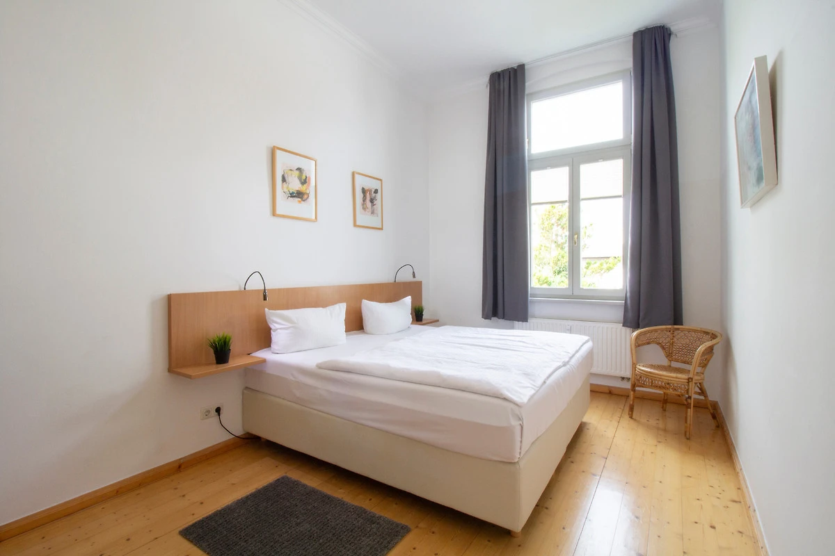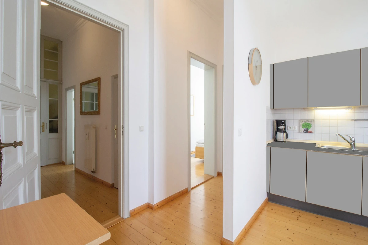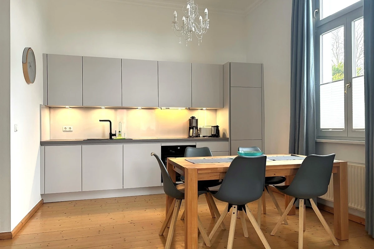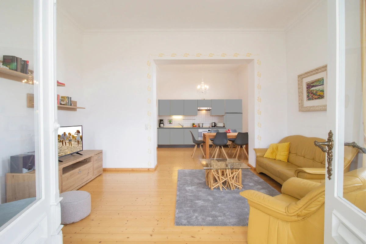 Die lichtdurchflutete 90 qm grosse 3-Zimmer Wohnung in typischer Bäderstilarchitektur mit hohen Decken liegt im 1. Obergeschoss und bietet bis zu 4 Personen viel Platz für einen entspannten Urlaub.