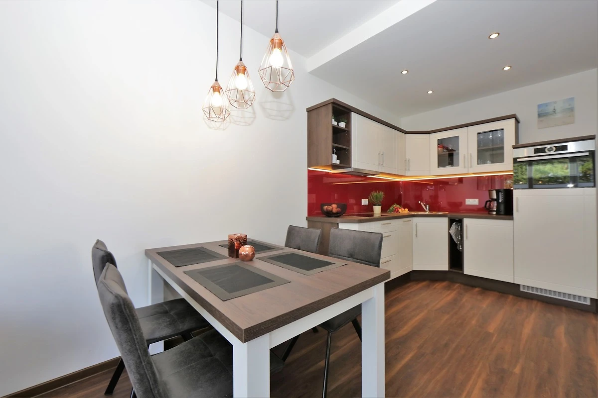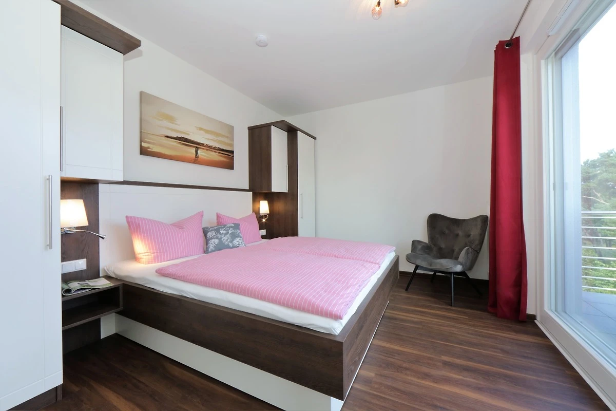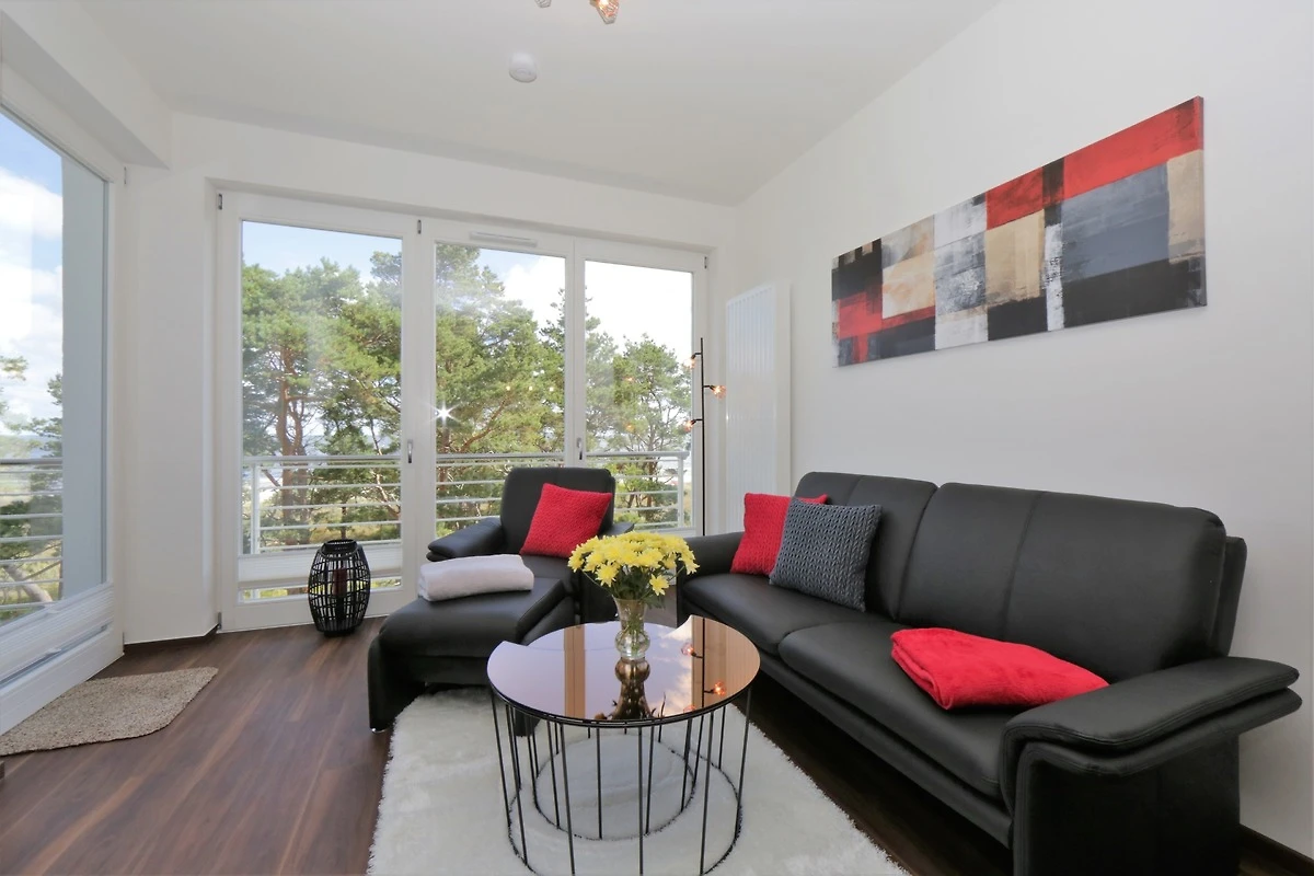 Dieses hochwertige, moderne 3-Zimmer Appartement ist 64 qm gross und befindet sich im 3. Obergeschoss der 2018 neu erbauten Strandresidenz. Die Wohnung mit 2 Schlafzimmern bietet 4 Personen reichlich Komfort im Urlaub. Im Wohnbereich erwartet Sie eine bequeme Ledergarnitur mit Sessel und Couchtisch, Flat TV und Soundbar sowie ein Esstisch für gemeinsame Mahlzeiten. Die Küche mit Cerankochfeld, Backofen, Geschirrspülmaschine, Kühlschrank etc. ist ebenfalls offen im Wohnraum integriert. Über den Wohnbereich sowie eines der Schlafzimmer erreichen Sie den zur Promenade ausgerichteten Balkon mit Blick auf die Ostsee. Die Schlafzimmer verfügen jeweils über ein komfortables Doppelbett mit getrennten Matratzen (90 x 200) und einen Kleiderschrank. Eines der Schlafzimmer ist mit einem zusätzlichen TV ausgestattet. Das grosszügige moderne Badezimmer mit Fenster ist mit einer bodengleichen Dusche mit Echtglasabtrennung und Waschtisch/WC ausgestattet. Ausserdem steht Ihnen ein Gäste-WC zur Verfügung.