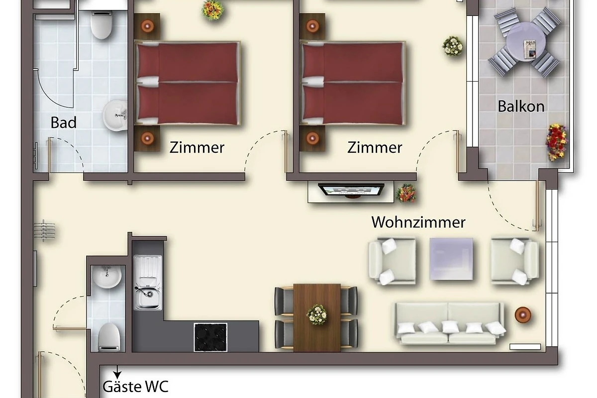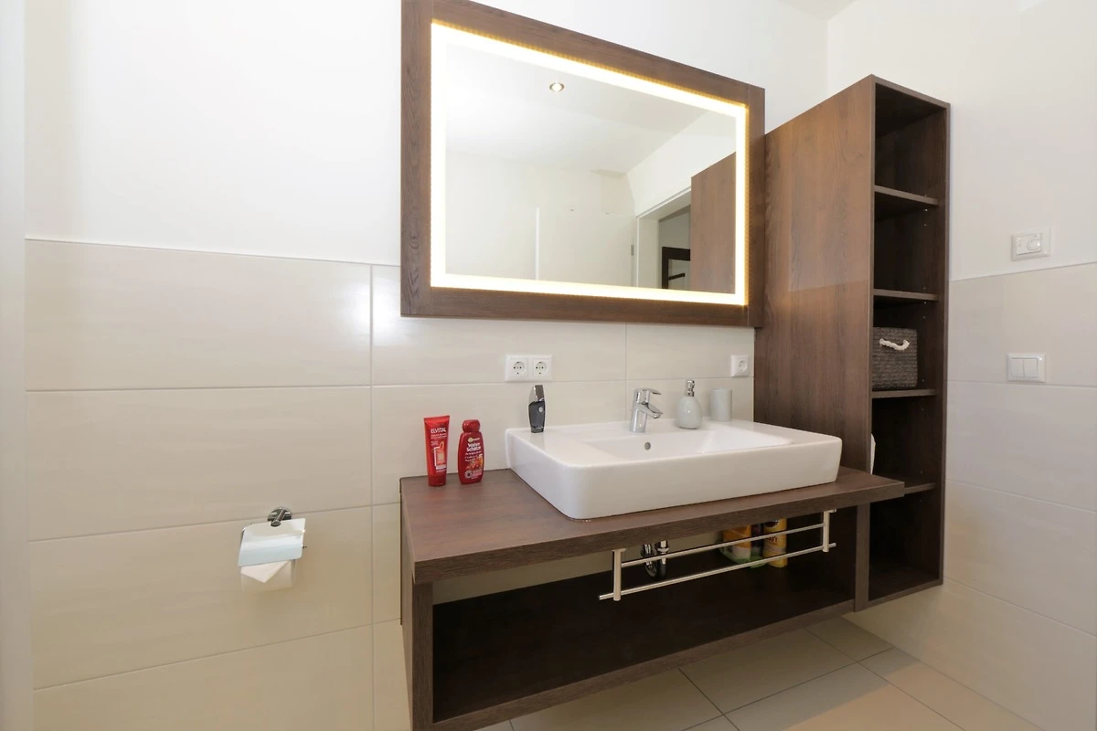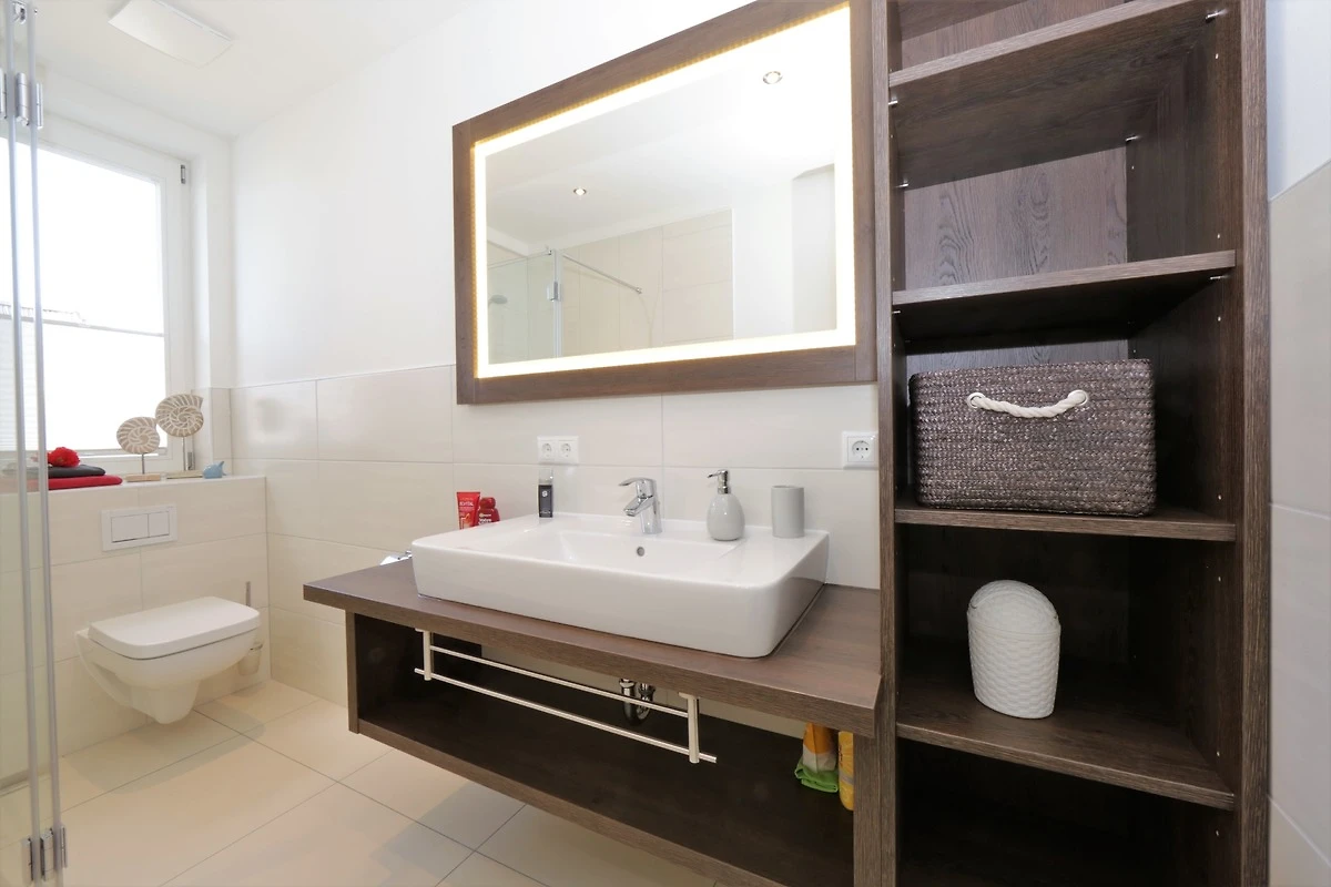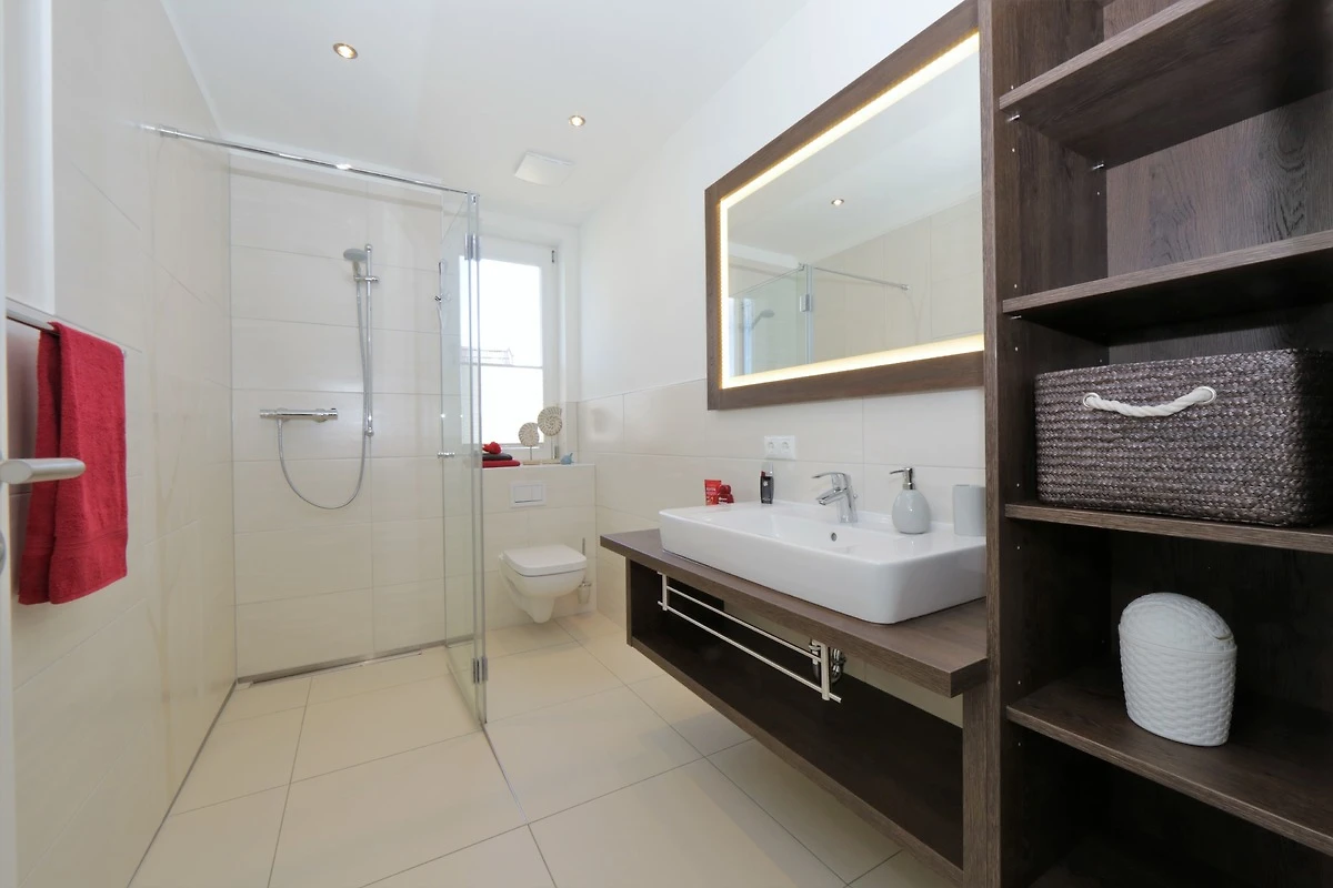 Dieses hochwertige, moderne 3-Zimmer Appartement ist 64 qm gross und befindet sich im 3. Obergeschoss der 2018 neu erbauten Strandresidenz. Die Wohnung mit 2 Schlafzimmern bietet 4 Personen reichlich Komfort im Urlaub. Im Wohnbereich erwartet Sie eine bequeme Ledergarnitur mit Sessel und Couchtisch, Flat TV und Soundbar sowie ein Esstisch für gemeinsame Mahlzeiten. Die Küche mit Cerankochfeld, Backofen, Geschirrspülmaschine, Kühlschrank etc. ist ebenfalls offen im Wohnraum integriert. Über den Wohnbereich sowie eines der Schlafzimmer erreichen Sie den zur Promenade ausgerichteten Balkon mit Blick auf die Ostsee. Die Schlafzimmer verfügen jeweils über ein komfortables Doppelbett mit getrennten Matratzen (90 x 200) und einen Kleiderschrank. Eines der Schlafzimmer ist mit einem zusätzlichen TV ausgestattet. Das grosszügige moderne Badezimmer mit Fenster ist mit einer bodengleichen Dusche mit Echtglasabtrennung und Waschtisch/WC ausgestattet. Ausserdem steht Ihnen ein Gäste-WC zur Verfügung.
