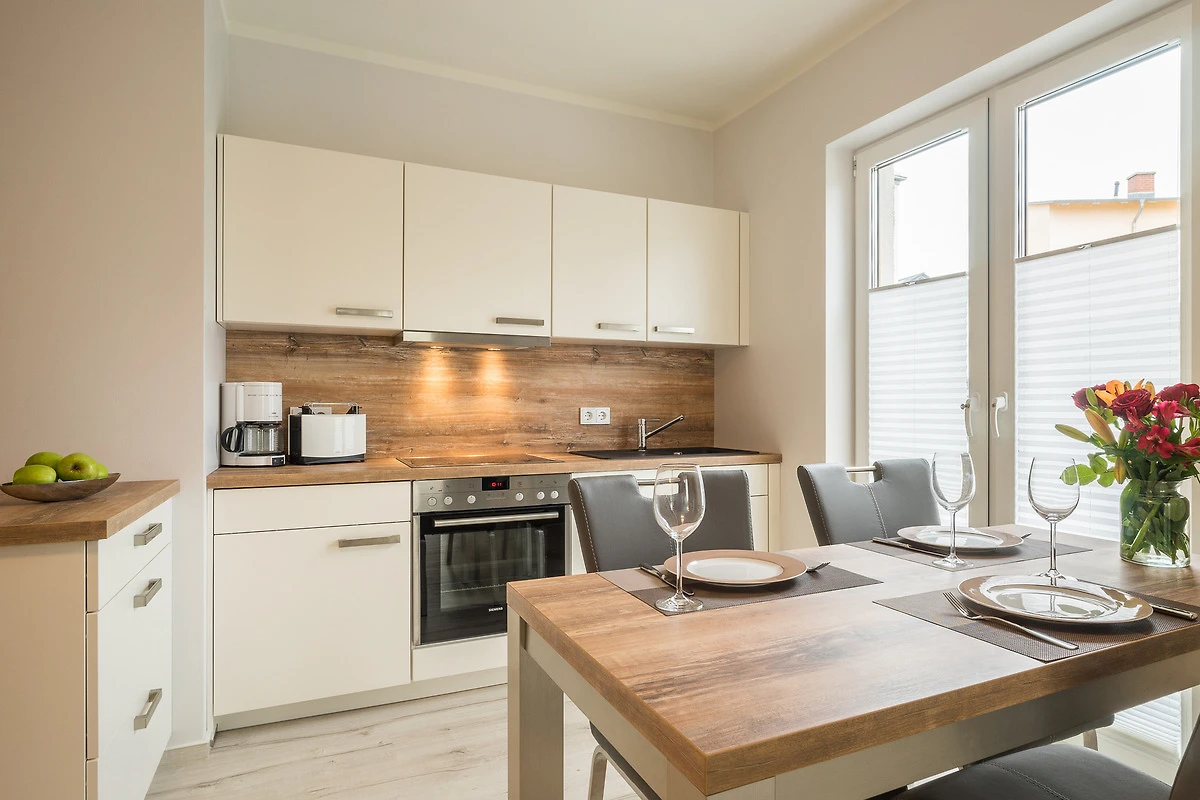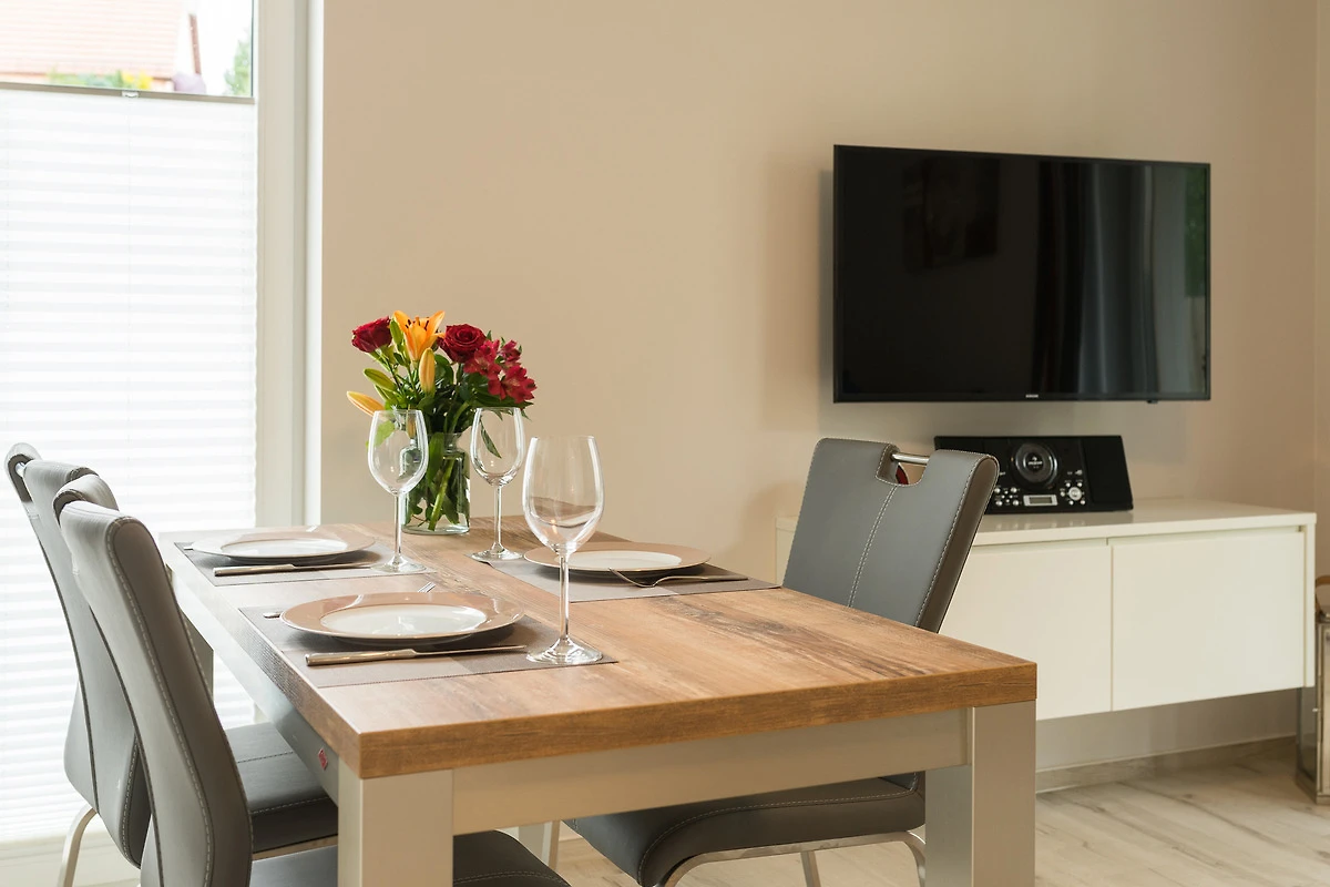 Dieses hochwertig und moderne 2-Zimmer Appartement ist 53 qm gross und befindet sich im Erdgeschoss der Ahlbecker Suiten. Die Wohnung ist geeignet für 2-3 Personen.