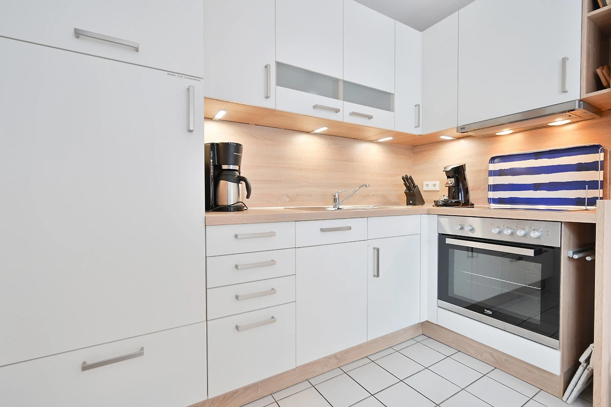 In der neuen gut ausgestatteten Küche findet ihr alles was ihr braucht, wenn ihr Spass am Kochen habt und nicht immer Essen gehen möchtet. Herd mit Ceranfeld, Backofen, Spülmaschine, Mikrowelle und Kühlschrank mit Gefrierfach, Senseo- und neue Filter-Kaffeemaschine sowie Milchaufschäumer. Für die gemütliche Tee-Stunde einen Wasserkocher, Teekanne und Stövchen.