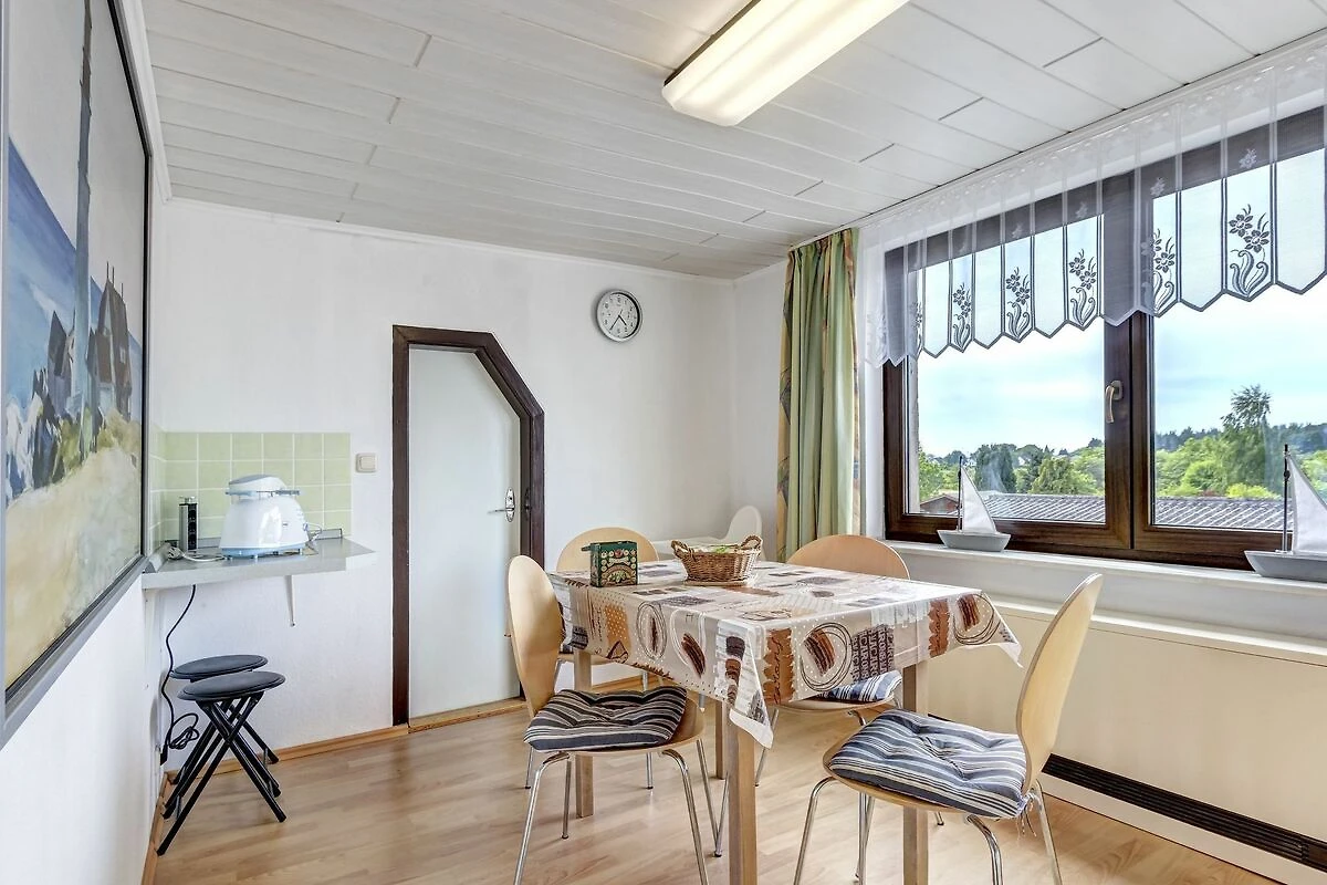 Die separate Küche ist bestens ausgestattet und bietet alles, was Sie für die Zubereitung Ihrer Mahlzeiten benötigen. Ein grosser Esstisch lädt zu gemeinsamen Essen ein, während die gut ausgestattete Küchenzeile mit Kochfeld, Kühlschrank (ohne Frostfach), Mikrowelle und Toaster keine Wünsche offenlässt. Der morgendliche Kaffee oder Tee ist dank Kaffeemaschine und Wasserkocher im Handumdrehen fertig der perfekte Start in den Tag!