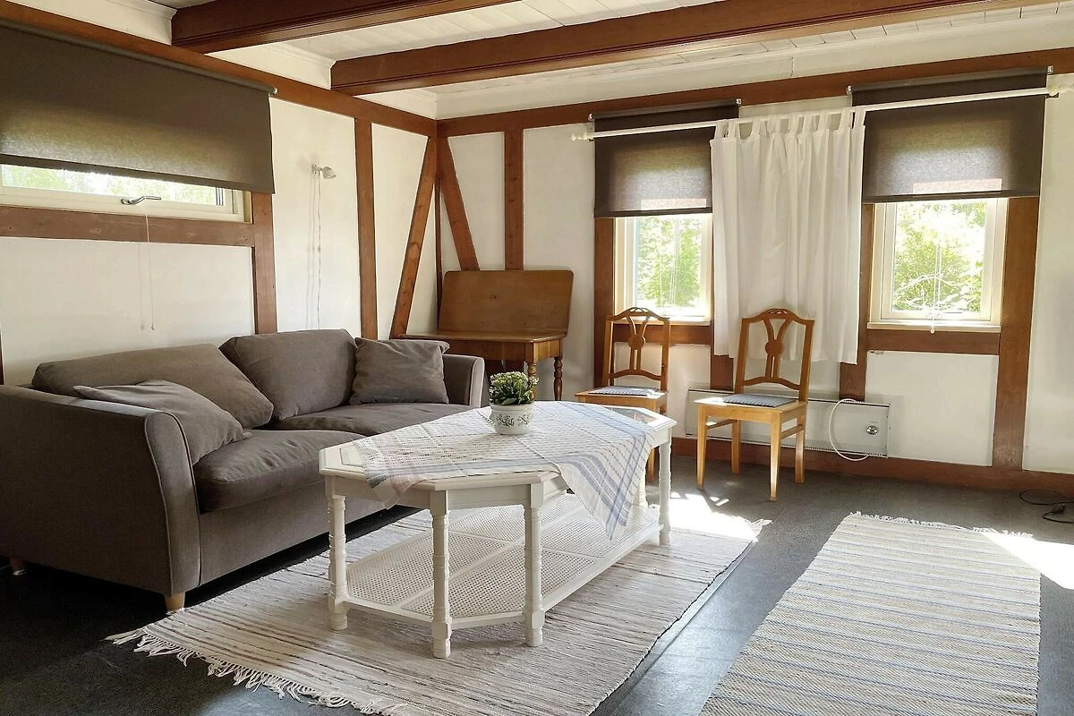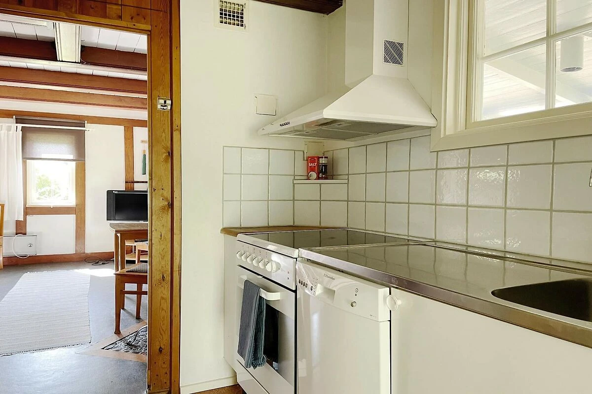 Küche(Kochherd(elektrisch), Dunstabzugshaube, Kaffeemaschine, Mikrowelle, Spülmaschine, Kühlschrank(+ Gefrierfach)), Wohn-/Schlafzimmer(Doppelklappbett , TV(schwedische Fernsehsender), Kaminofen), Schlafzimmer(2x Etagenbett), Badezimmer(Fußbodenheizung)(Waschbecken, Dusche, Toilette), Balkon, Heizung(elektrisch), Gartenmöbel, Außenkamin