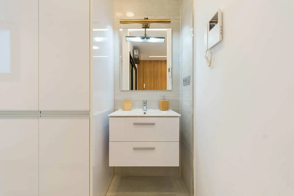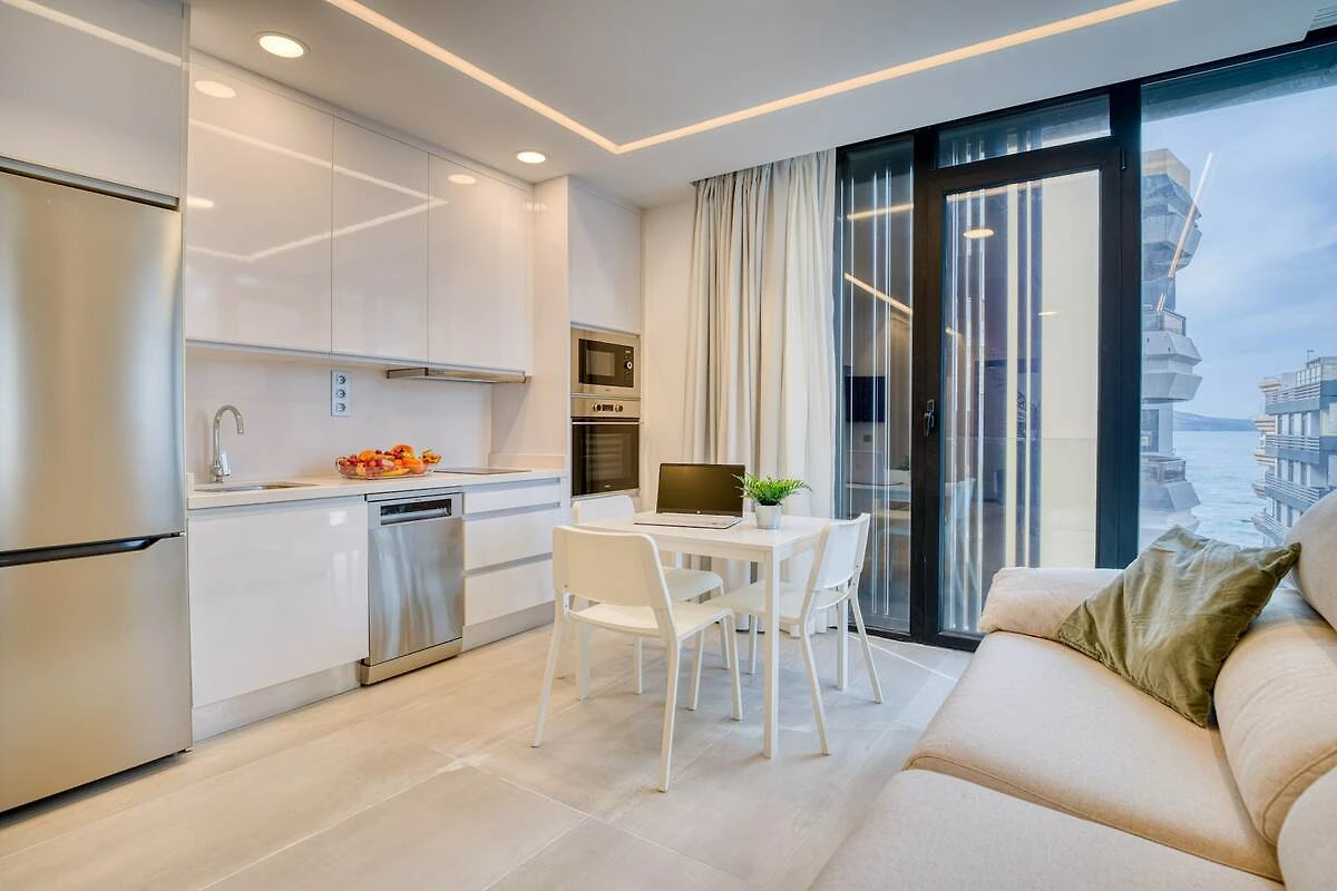 Das Interieur ist durchdacht gestaltet und komfortabel ausgestattet. Es verfügt über Klimaanlage, WLAN, Fernseher und eine Waschmaschine mit Trockner. Die separate Küche ist mit Cerankochfeld, Backofen, Mikrowelle, Geschirrspüler, Kaffeemaschine und allen Küchenutensilien für die Zubereitung hausgemachter Mahlzeiten ausgestattet. Ein Aufzug sorgt für bequemen Zugang, und das Apartment eignet sich ideal für kurze und längere Aufenthalte.