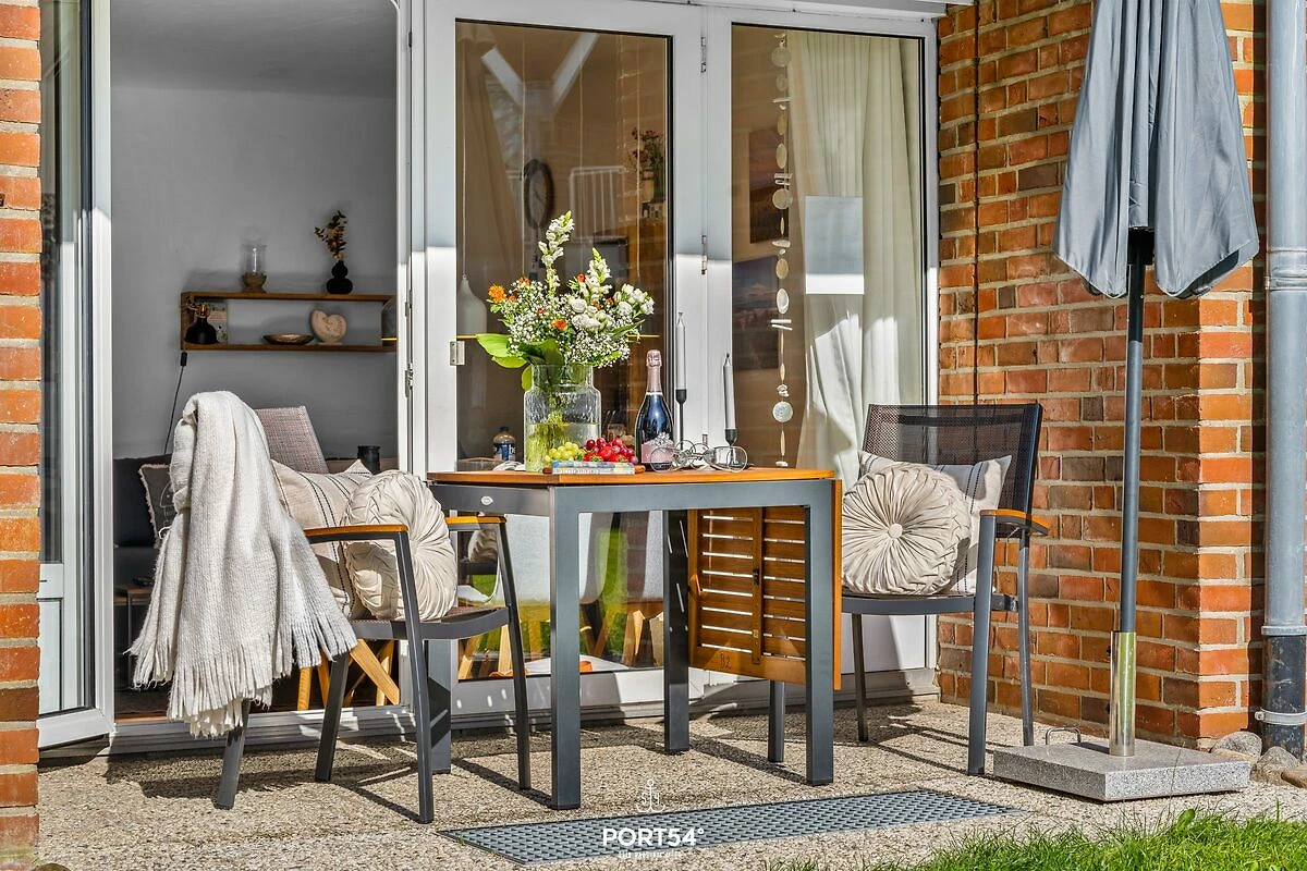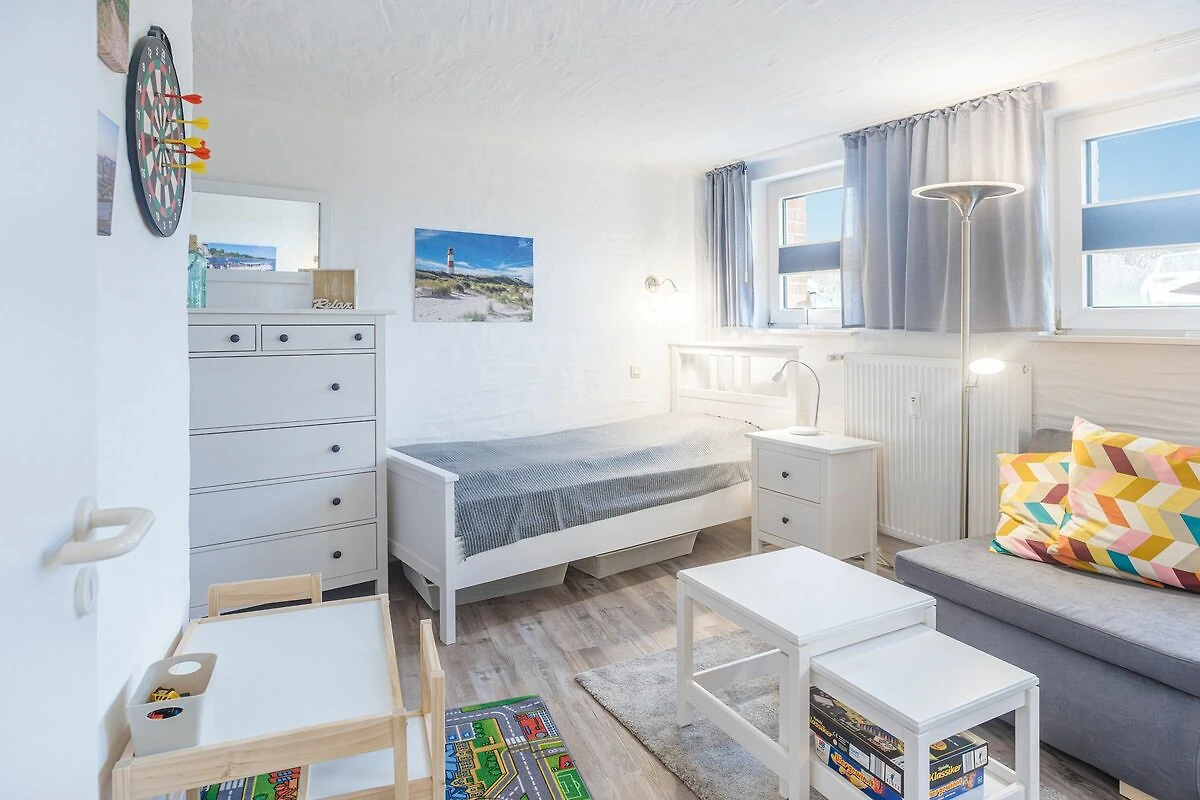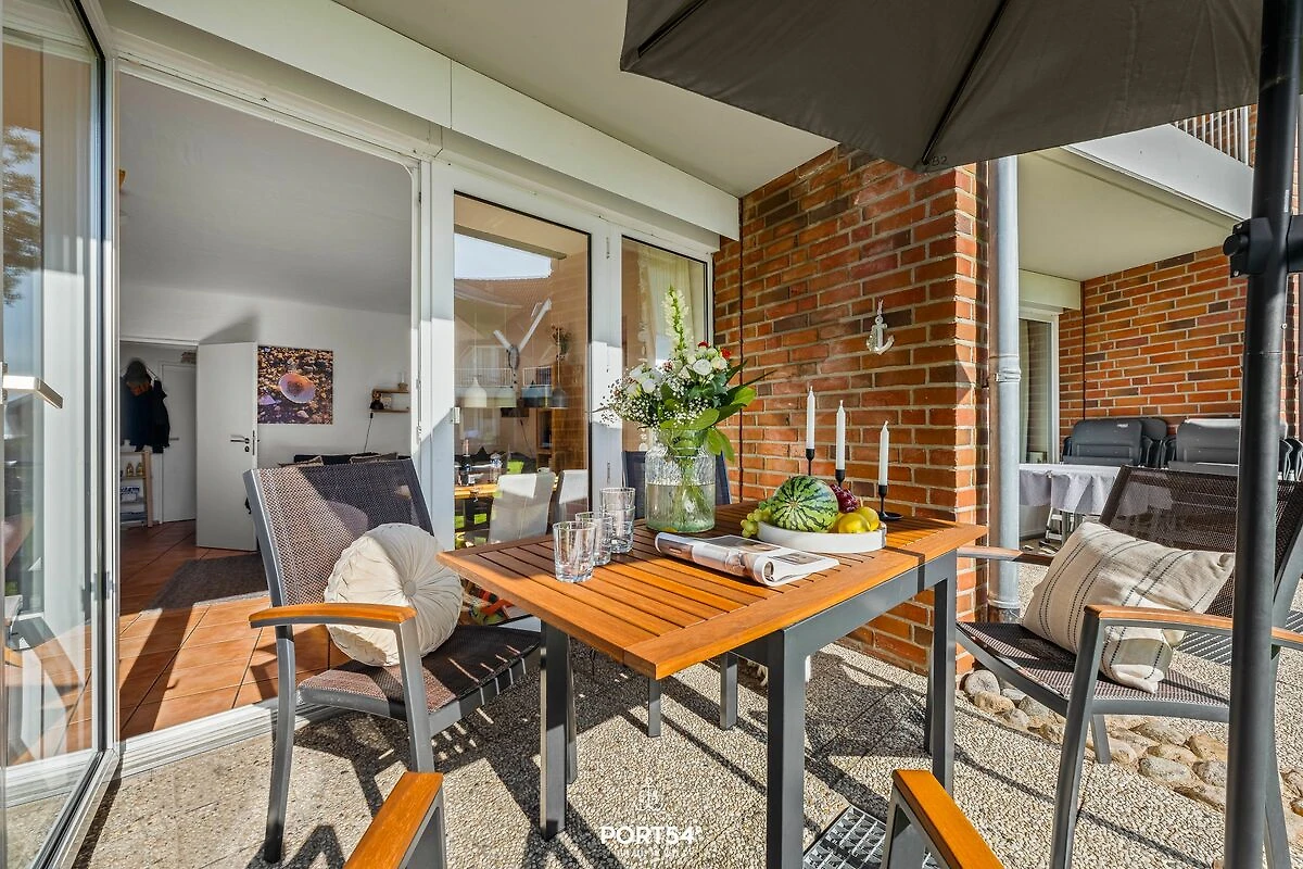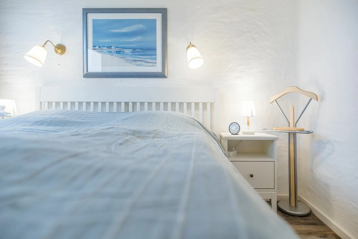 Nur 50m vom schönen Sandstrand entfernt, umgeben von unberührter Natur nahe dem Landschaftsschutzgebiet „Geltinger Birk“ und den Orten Gelting, Maasholm und Kappeln in unmittelbarer Nähe wohnen Sie in der hochwertig eingerichteten Ferienwohnung "Meerblick", die auf 51m² Platz für 5 Personen bietet, ebenerdig mit Terrasse und Blick auf die Ostsee. Das Interieur der Unterkunft ist modern und skandinavisch gemütlich aufeinander abgestimmt. Ein komfortables Ecksofa für bis zu 5 Personen mit angenehmer Beleuchtung und Teppich lädt zum gemütlichen Lesen, zu einem Glas Wein oder Fernsehen ein. Der an der Wand befestigte und schwenkbare 40‘ Fernseher ist von jedem Sitzplatz im Wohn- und Essbereich einsehbar. Am langen, hochwertigen Holz-Esstisch genießen Sie das Wohlfühlambiente, nicht nur beim zubereiteten Essen, sondern gerne auch bei Brett- und Kartenspielen, begleitet von Musik der Stereoanlage. Zum Essbereich gehört die modern ausgestattete Einbauküche, die keinen Wunsch an Küchenutensilien und „kleinen Helfern“ offen lässt; Cerankochfeld, Backofen, Geschirrspüler, Kaffee- und Kaffee-Kapselmaschine (Tassimo), Wasserkocher, Toaster, Handmixer, Eierkocher und ganz viel Platz für „dütt un datt“ inbegriffen. Auch eine hochwertige Einbau-Mikrowelle istr vorhanden. Damit Sie für jede Situation die richtige Stimmung erzeugen können, stehen Ihnen zahlreiche Beleuchtungsmöglichkeiten zur Verfügung. Das Schlafzimmer besteht aus einem Doppelbett (180 x 200 cm), 2 Nachttischen, einer offenen Kleider-, Regal- und Schubladenkombination mit ausreichend Platz für Ihre Urlaubsgarderobe, einer Ambiente-Leuchte, 2 Wand- und 2 Leselampen, Verdunkelungs-Plissées und Vorhängen sowie einem eingebauten Fliegengitter. Das ebenerdige Tageslichtbad besteht aus einer Dusche mit Glasabtrennung und Duschregal, Handtuchwärmer, Föhn, Kosmetikspiegel und Waschtisch mit geräumigen Unterbauschrank. Das zweite Schlafzimmer im Souterrain besteht aus 2 Einzelbetten (90 x 200 cm), mit je einer Wandleuchte, einer Leselampe, einer geräumigen Kommode, ein auf 90 x 200 cm ausziehbarer Schlafsessel mit Matratzenauflage im Abstellraum sowie Couchtisch, Teppich, Deckenfluter mit integrierter Leselampe, Dartscheibe und - falls Sie mit kleinen Kindern anreisen: ein Spielteppich mit kleinen Autos, Maltisch und 2 Stühlchen vervollständigen das Interieur. Ferner ist das Zimmer ebenfalls mit Verdunkelungs-Plissées, Vorhängen und im Fenster integriertem Fliegengitter ausgestattet. Zusätzlich finden Sie Sonnenschirm, Staubsauger, Wäscheständer, Wäschekorb, Dusch-Sitz-Hocker, 2-Trittleiter, Bügeleisen und -brett, Kinderhochstuhl, Baby-Reisebett, Kinder-Rausfallschutz und 2 Sandschaufeln im Abstellraum. Ein kostenloser Parkplatz ist ebenfalls für Sie vor der Unterkunft reserviert. Auf der Terrasse mit den hochwertigen Alu-, Holz-Terrassenmöbeln können Sie sich mit Blick auf die Ostsee und der gepflegten Gartenanlage wohlfühlen. Die großzügige Wiese, die sowohl zur Aktivität als auch zur Entspannung einlädt, kann von der Terrasse aus der direkte Weg zum Strand sein. Es erwartet Sie in der Zeit von Ostern bis zum letzten Wochenende im September ein kostenloser Strandkorb ohne Strandgebühr oder Kurtaxe. Zudem bietet die Apartmentanlage einen kostenfreien Zugang zum Schwimmbad in der Zeit von Ostern bis Oktober, einen Aktivraum mit Tischkicker und einer Tischtennisplatte (Schläger und Bälle bitte selbst mitnehmen) sowie einen gemeinschaftlich genutzten Wellnessbereich mit einer Infrarot-Sauna, die mit 2€-Münzen betrieben wird, eine Wärmekabine, Waschmaschine und Trockner gegen kleine Gebühr sowie einen abschließbaren, gemeinschaftlichen Fahrradraum.