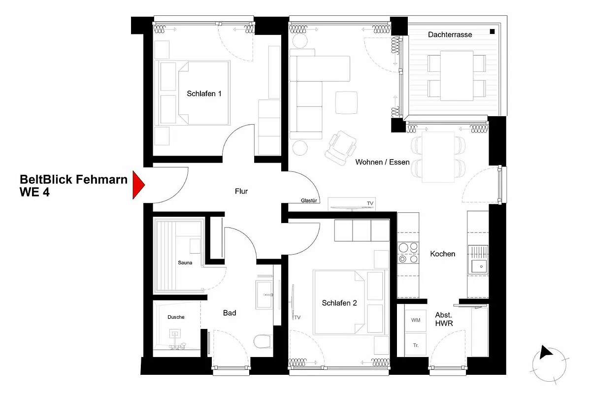 Moin und herzlich willkommen in deiner Urlaubswohnung direkt am Meer! In BeltBlick 4 wohnst du in erster Reihe zur Ostsee – mit traumhaftem Ausblick, viel Komfort und frischer Meeresluft. Die moderne Ferienwohnung bietet dir alles für entspannte Tage – auch dein vierbeiniger Begleiter ist bei uns herzlich willkommen!