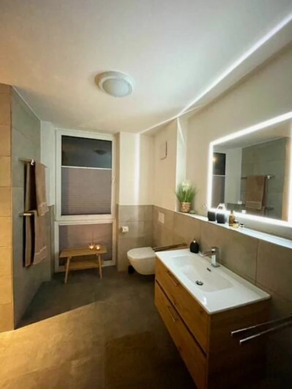 Kostenfreies WLAN, ein eigener Parkplatz direkt an der Wohnung und ein kontaktloser Check-in per Schlüsseltresor sorgen für Flexibilität und Komfort. Fahrräder kannst du sicher im abschließbaren Fahrradraum unterbringen – inklusive Lademöglichkeit für E-Bikes. Zwei Liegen auf der Terrasse und die angrenzende Grünfläche laden zum Verweilen, Sonnen oder Spielen ein. Ein Hund ist nach vorheriger Absprache und gegen Gebühr willkommen.