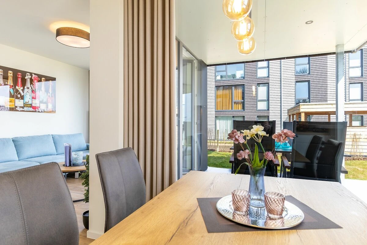 BeltBlick 26 ist ideal für Familien: Die Wohnung liegt ebenerdig, bietet Platz für bis zu fünf Gäste und hat eine angrenzende Rasenfläche, die zum Spielen, Toben oder Sonnen einlädt. Auch an Regentagen sorgt die Sauna für entspannte Momente.