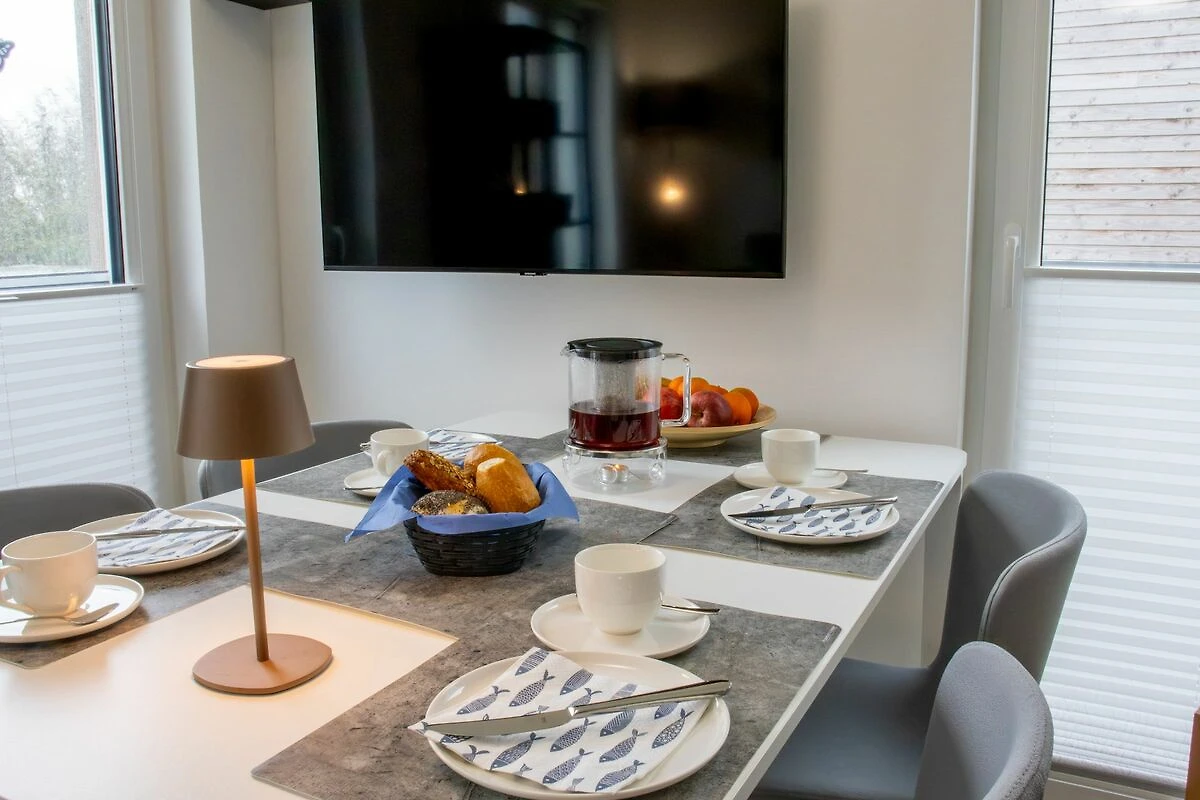 Zur Ausstattung gehören eine Waschmaschine, schnelles WLAN sowie hochwertige Gartenmöbel und ein Sonnenschirm auf der Südwest-Terrasse. Ein weiteres Highlight: die Dachterrasse mit traumhaftem Blick auf Deich und Naturschutzgebiet – euer Rückzugsort mit Aussicht.
