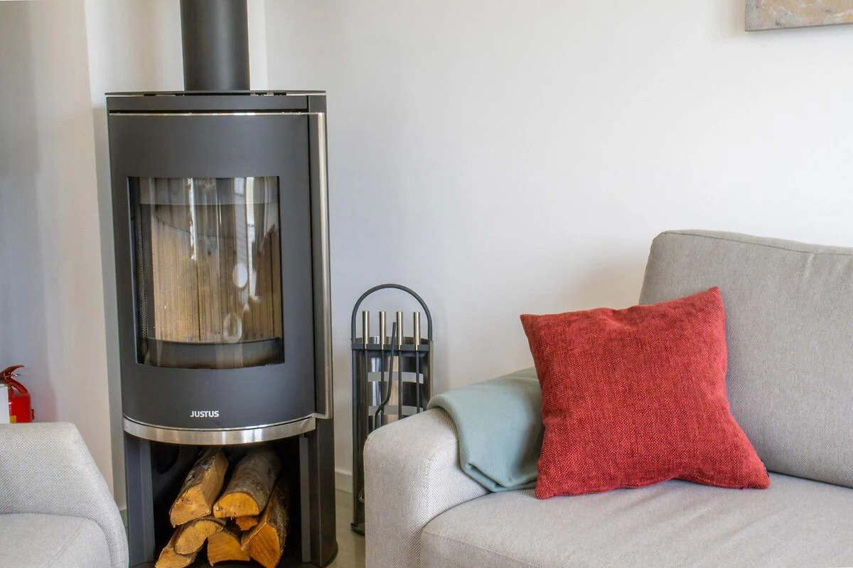 Im offenen Wohnbereich erwarten dich eine bequeme Couch, ein Kamin für gemütliche Stunden sowie ein Smart-TV mit ZuhauseTV. Die voll ausgestattete Küche ist modern und einladend – perfekt für gemeinsame Kochmomente. Bodentiefe Fenster führen direkt auf die Terrasse mit Garten.