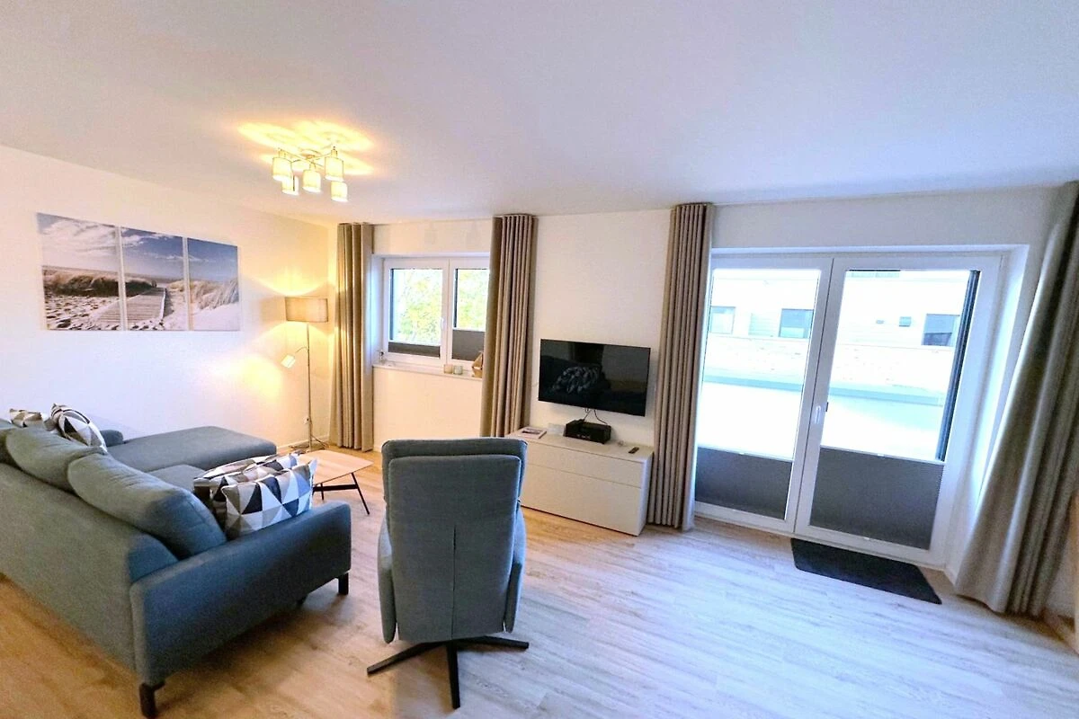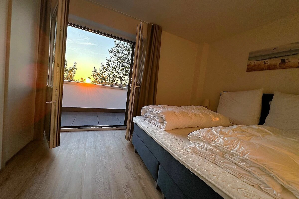 Im „Meerverliebt“ erwartet euch eine lichtdurchflutete Penthousewohnung mit 97 m² Wohnfläche für bis zu 6 Gäste + Baby/Kleinkind. Die Kombination aus stilvollem Design, privater Sauna und großzügiger Dachterrasse macht sie zu einem echten Wohlfühlort für alle, die das Meer lieben – ob Familie, Freunde oder Hundebesitzer.