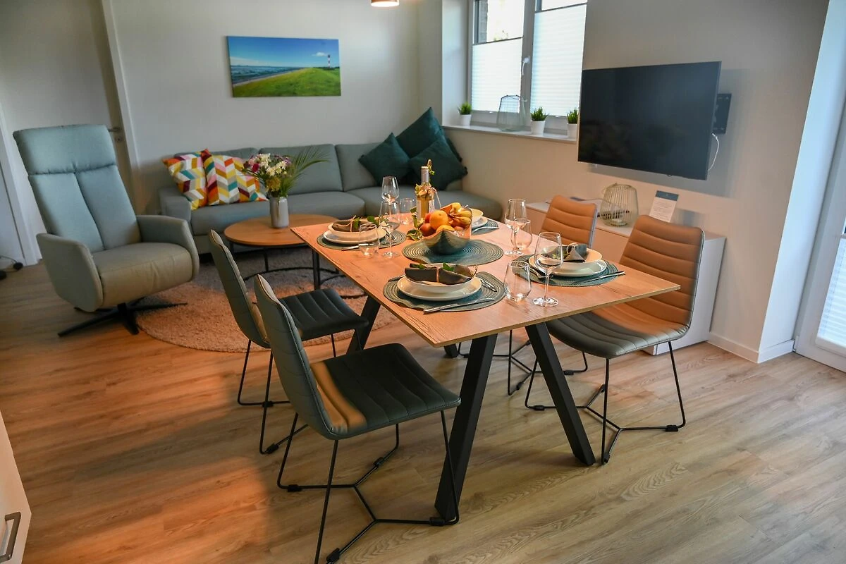 Willkommen in der Ferienwohnung Lieblingsplatz – eurem barrierearmen Wohlfühlort an der Nordseeküste! Euch erwartet eine neue Erdgeschosswohnung mit hochwertiger Ausstattung, privater Sauna, durchdachtem Grundriss und stilvollem Design – ideal für Paare, Familien mit Kindern oder Gäste mit Mobilitätseinschränkung. Nur 150 m vom Deich und 400 m vom Friesenstrand entfernt, liegt euer Lieblingsplatz im modernen Ferienkomplex KÜSTE33 in Tossens. Auf 77 m² erwarten euch zwei Schlafzimmer und ein großzügiger Wohnbereich – perfekt zum Ankommen und Genießen.