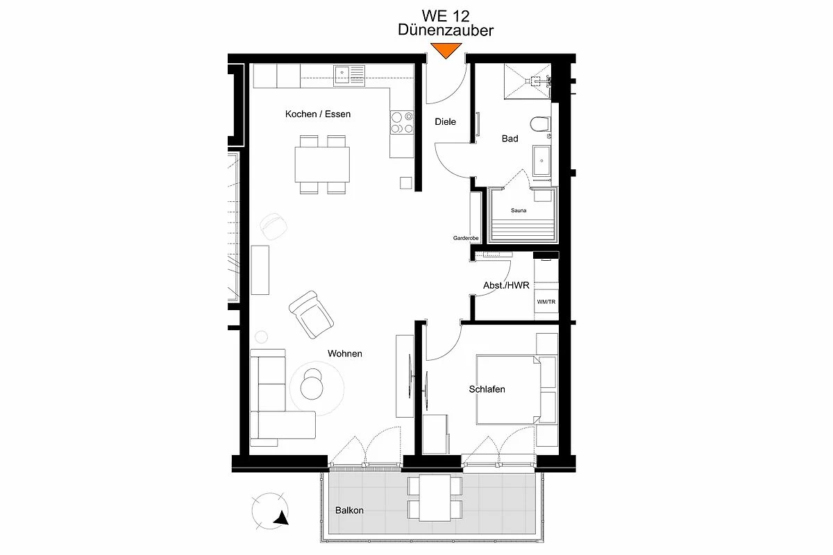 Willkommen im Dünenzauber – eurem stilvollen Urlaubsdomizil an der Nordseeküste! Euch erwartet eine hochwertig ausgestattete Ferienwohnung mit privater Sauna, großzügigem Schnitt und durchdachter Ausstattung – perfekt für Paare, kleine Familien und Gäste mit besonderen Komfortansprüchen. Die Wohnung liegt im 1. Obergeschoss (Fahrstuhl vorhanden) im neuen Ferienkomplex KÜSTE33 – nur 150 m vom Deich und 400 m vom Friesenstrand entfernt.