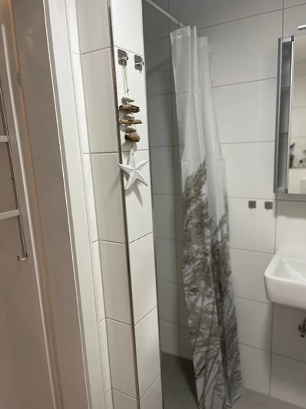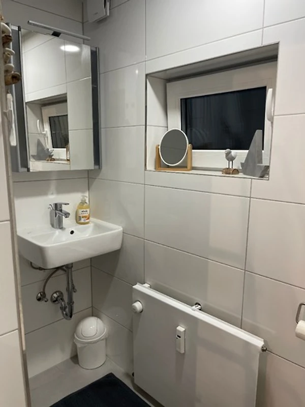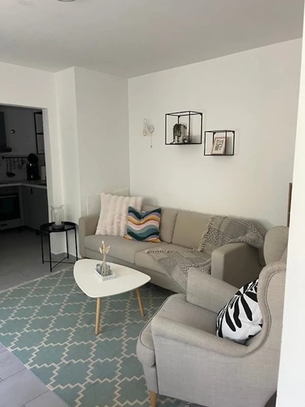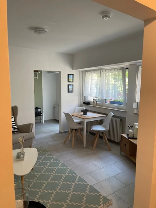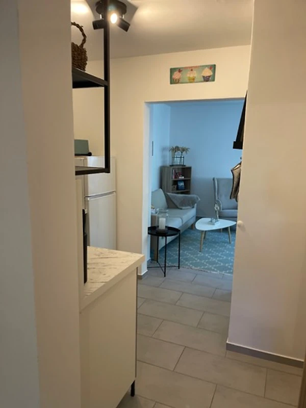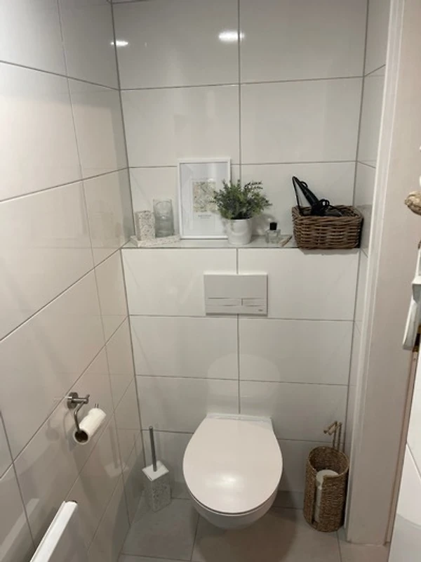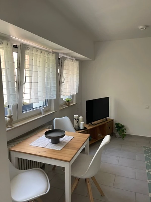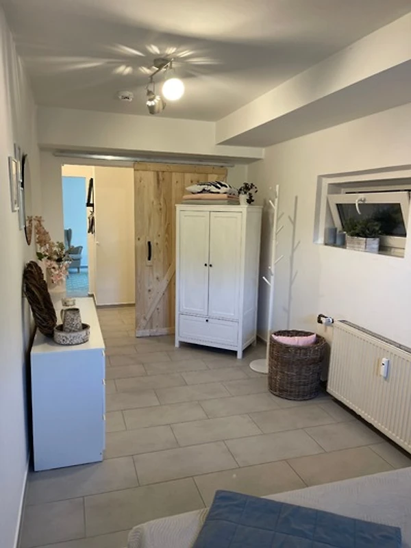 Ausgestattet ist sie mit einem Schlafzimmer, ein Wohn-/Esszimmer mit Fernseher, einem kleinen Bad, einer Küche, Flur-/ Eingangsbereich, Abstellkammer mit Waschmaschine.