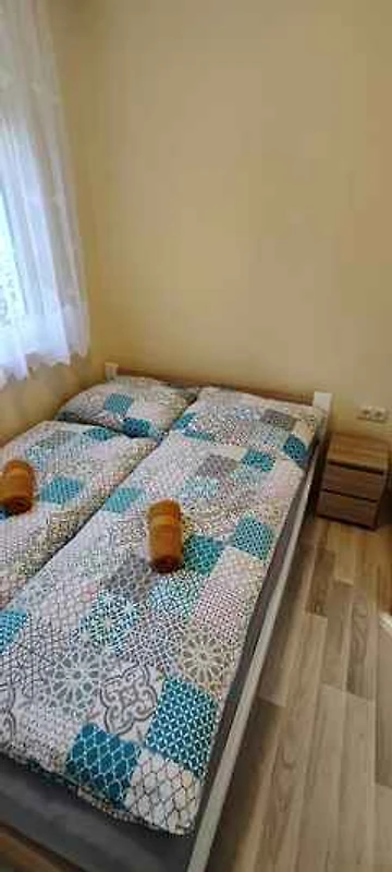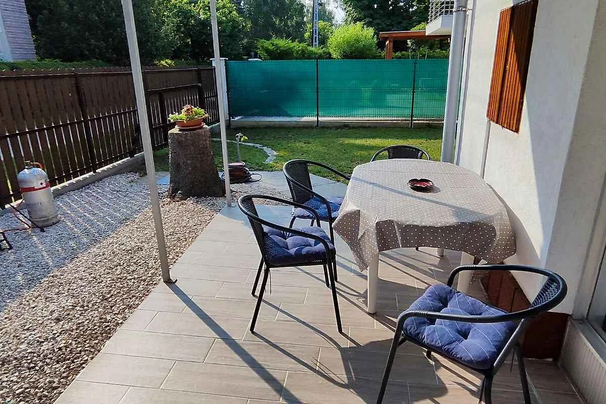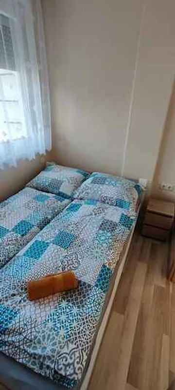 Siófok. Das Ferienhaus befindet sich auf einem 50 qm grossen Gartengrundstück mit Wiese, Sträuchern und Bäumen. Der Vermieter wohnt nicht im Haus oder auf dem Grundstück. Parkplatz (für 2 Pkws) auf dem Grundstück.