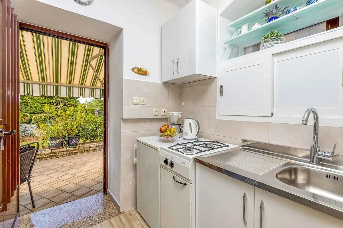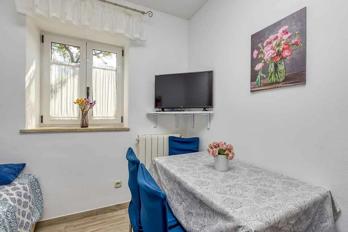 Kanfanar. Die Ferienwohnung befindet sich auf einem geschlossenen Gartengrundstück mit Blumen, Sträuchern und Bäumen, von einem Zaun und einer Hecke begrenzt. Kanfanar ist eine kleine Stadt im südwestlichen Teil der istrischen Halbinsel, 275 Meter über dem Meeresspiegel. Es ist nur 8 km vom Limski-Kanal und den berühmten Höhlen entfernt. Es herrscht mediterranes Klima mit angenehmen Temperaturen im Sommer und milden Wintern. Für Freeclimbing-Liebhaber gibt es in Kanfanar zwei geeignete Stellen: eine am Ende von Limska splje, neben der Strasse, und die andere oberhalb von Dvigrad, im nördlichen Teil von Draga. In der Zwischenzeit finden diejenigen, die gerne wandern oder Rad fahren, eine Vielzahl von Strassen und Wegen, die in das schönste Innere der Halbinsel Istrien führen. 30 Kilometer Radwege verbinden Kanfanar mit Nachbardörfern wie Dvigrad, Lim, Barat, Žminj und Svetvinčenat. Die Zufahrt erfolgt über eine Nebenstrasse (asphaltiert). Parkplatz (für 1 Pkw) auf dem Grundstück.