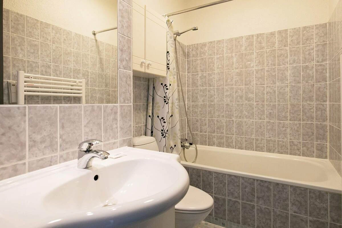 , offene Küche(Kochherd(elektrisch), Dunstabzugshaube, Kaffeemaschine, Backofen, Spülmaschine, Kühlschrank(+ Gefrierfach)), Wohn-/Schlafzimmer(2x Einzelklappbett , TV), Schlafzimmer(2x Einzelbett), Badezimmer(Dusche, Toilette), Trockner(Gemeinschaftliche Nutzung mit anderen Gästen), Sonnenbank / Solarium, Waschmaschine(Gemeinschaftliche Nutzung mit anderen Gästen, gegen Gebühr), Heizung(Zentral), Parkplatz, Fitnessgeräte