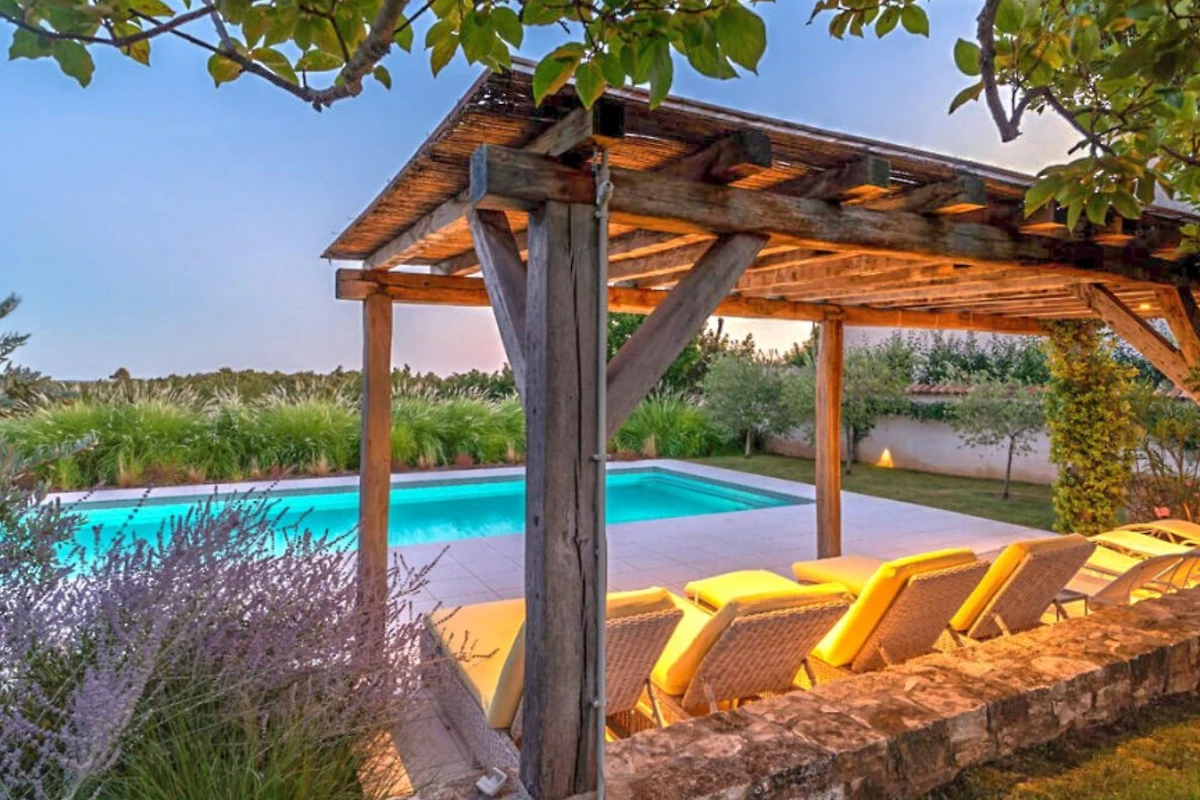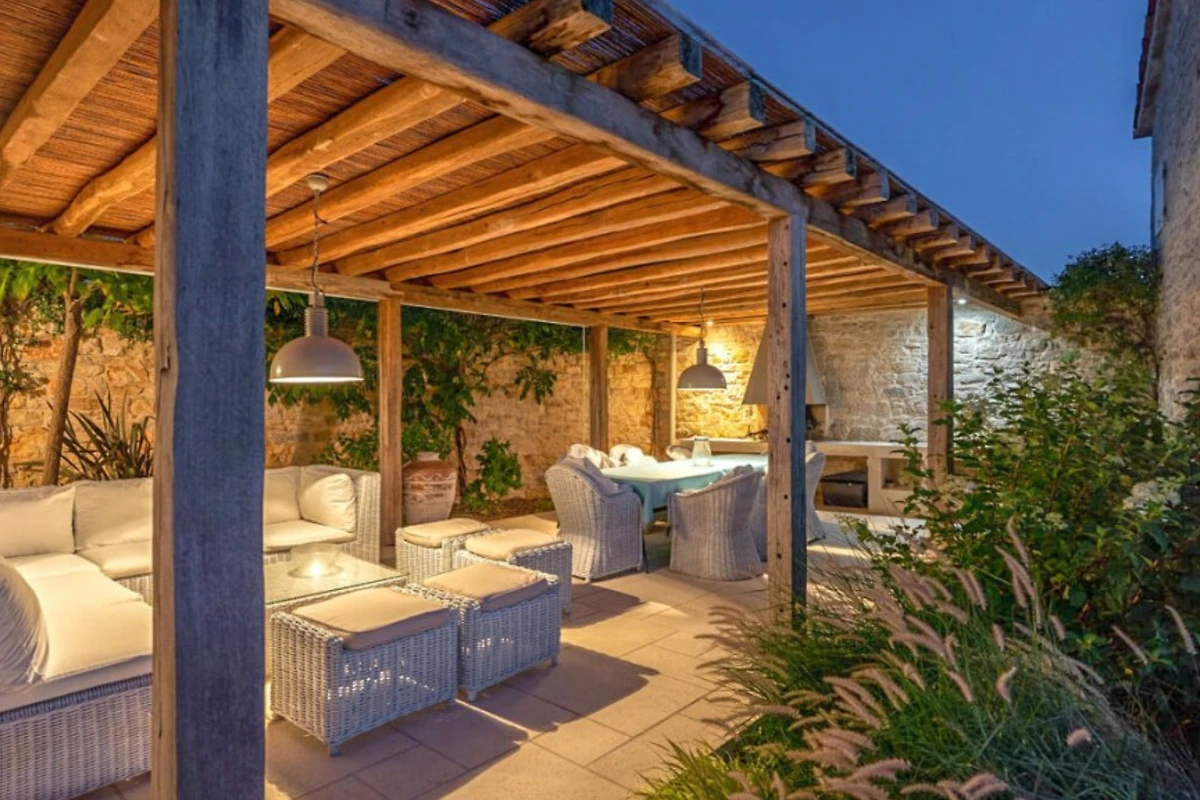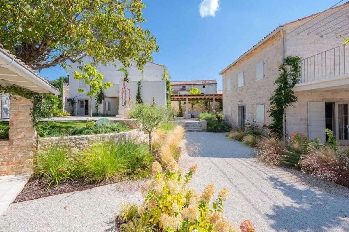 Im ruhigen Weiler Radovani, nicht weit von Višnjan entfernt, finden Sie die einzigartige Villa Charlotta. Dieses alte istrische Bauernhaus wurde mit einer Kombination aus Alt und Neu renoviert, wobei traditionelle istrische Elemente gekonnt in luxuriöse Innenräume integriert wurden. Der Komplex besteht aus 3 unabhängigen Wohneinheiten und einem Poolhaus mit 7 Schlafzimmern und 7 Badezimmern für 13 Personen, und auch Haustiere sind willkommen. Die Villa Charlotta bietet Ihnen eine neue Dimension der Entspannung mit einem traumhaften Garten mit mehreren Innenhöfen und einem Swimmingpool, völliger Privatsphäre inmitten von mediterranem Grün und einem Concierge-Service, der ein frisch zubereitetes Frühstück und die Wartung der Villa beinhaltet.